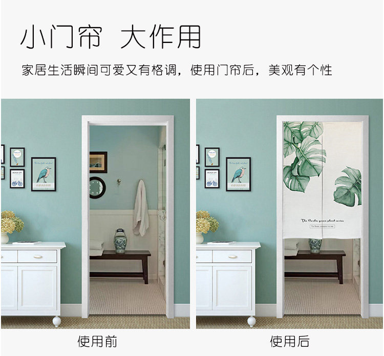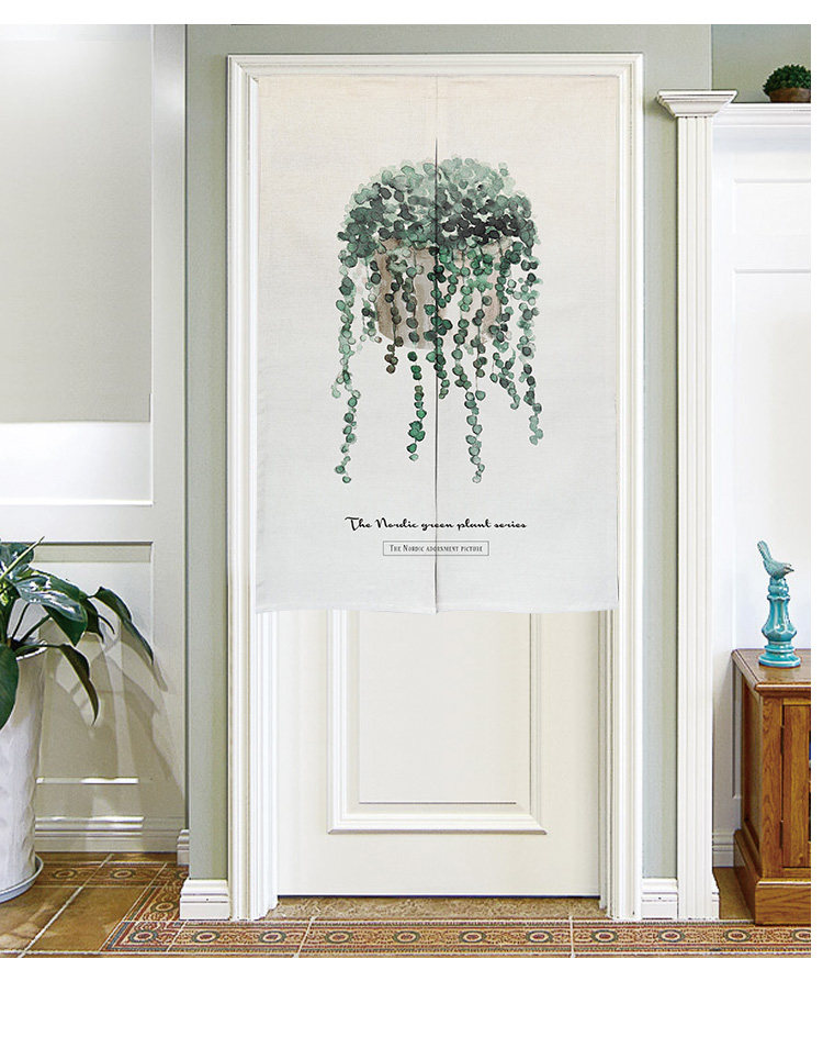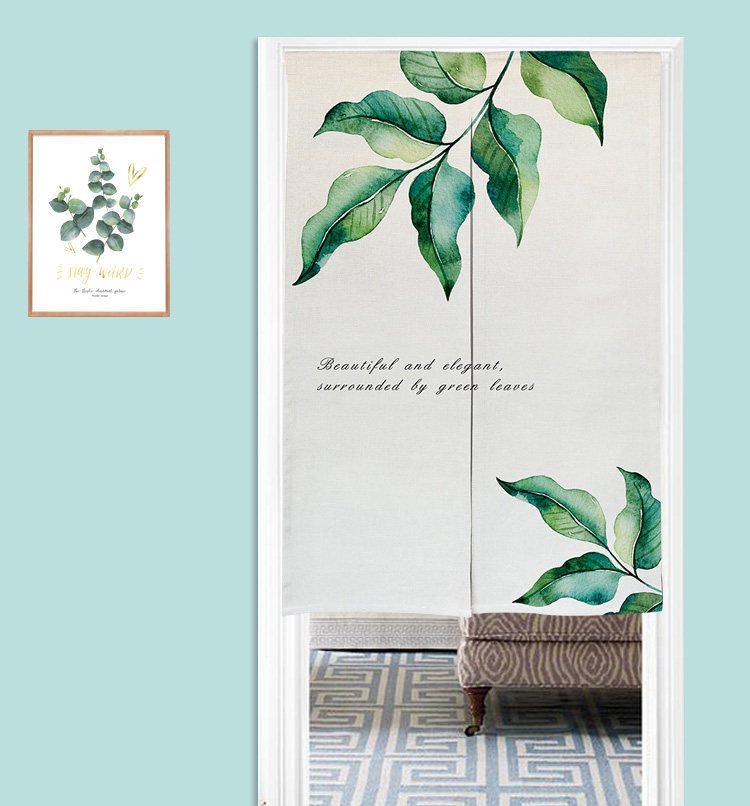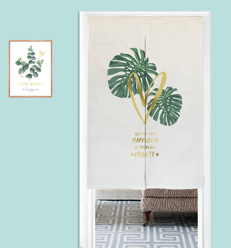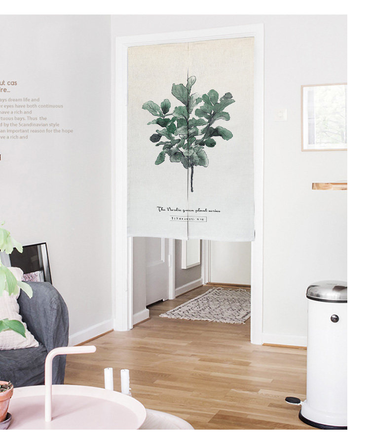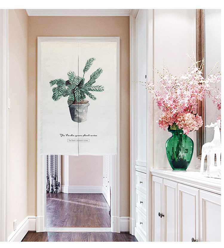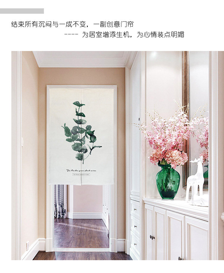 北欧清新绿植门帘布艺隔断帘卧室日式挂帘厨房半帘来图定制