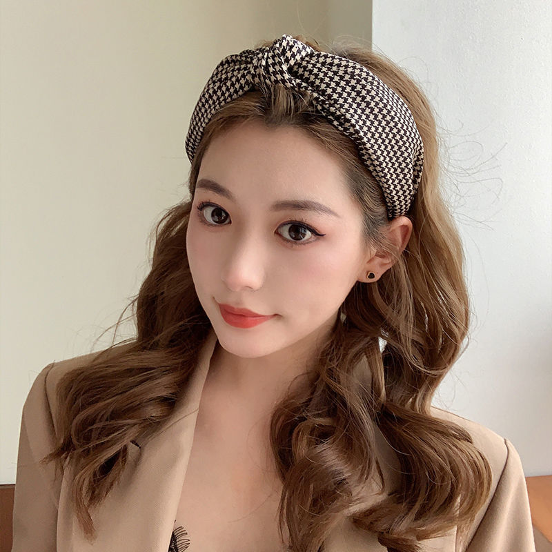 韩版复古千鸟格发箍女法式气质拼接交叉宽边头箍网红百搭发卡头饰