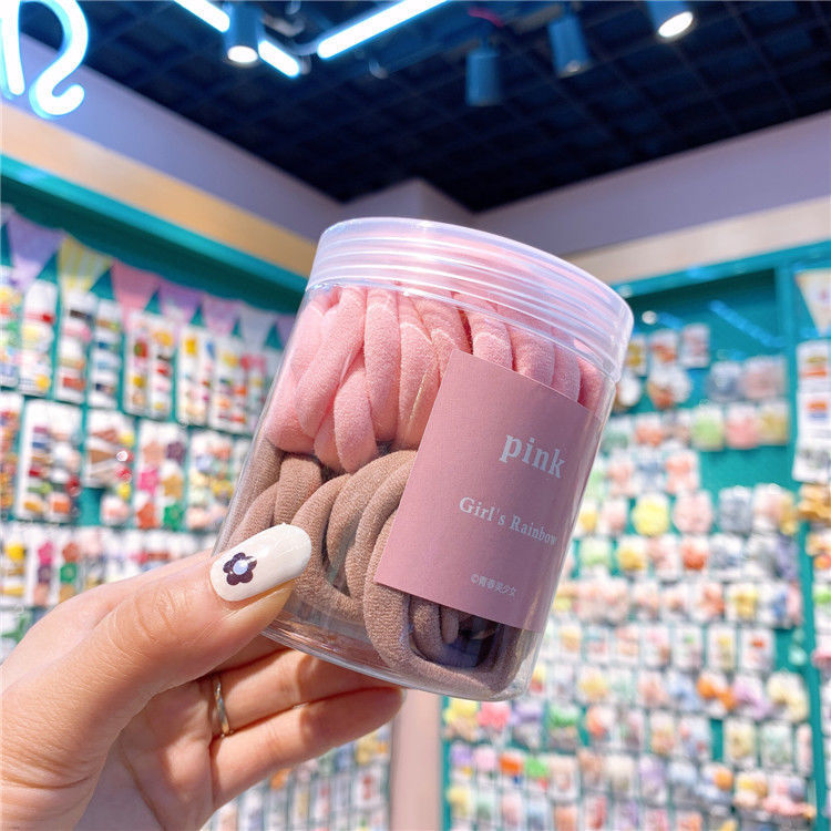 毛巾圈ins皮筋女学生韩版基础头绳 撞色简约发饰罐装高弹力不伤发