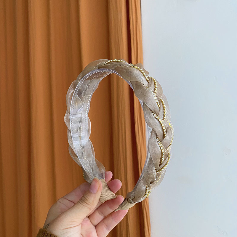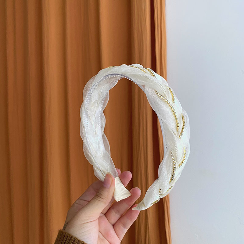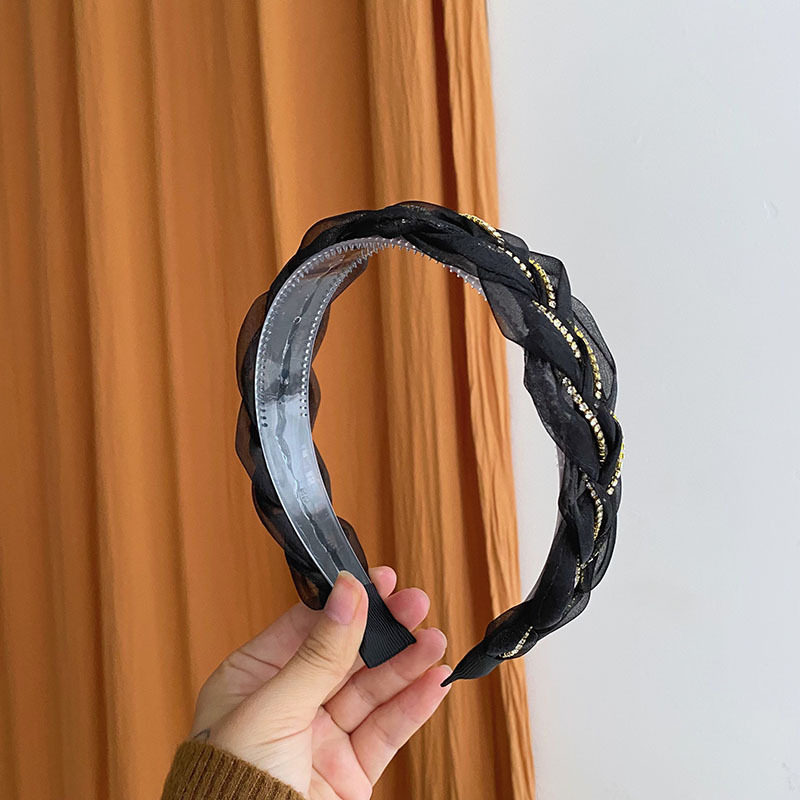 韩版发饰蕾丝网纱发箍链条麻花欧根纱水钻高颅顶头箍韩版饰品批发