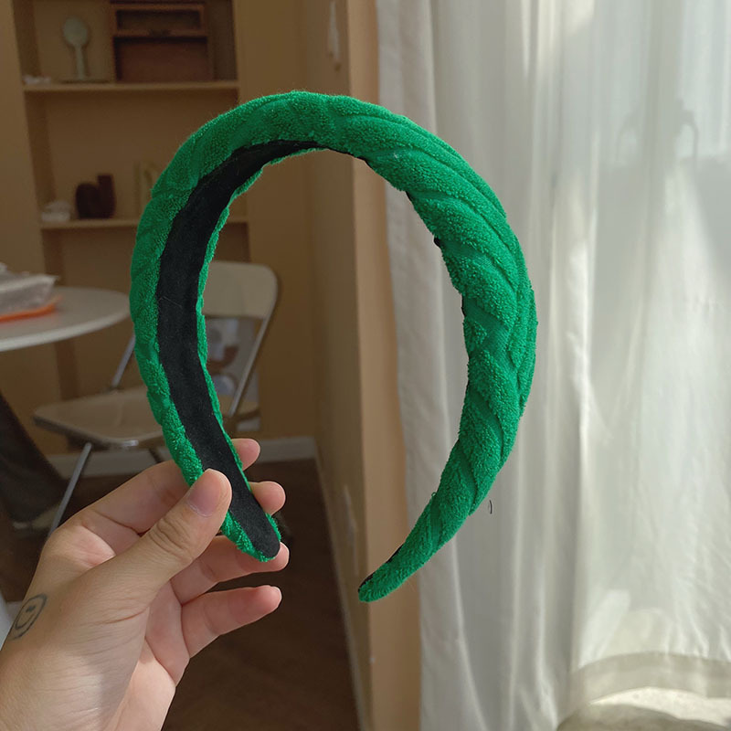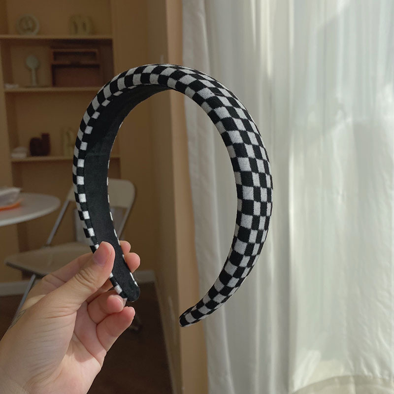 棋盘格高颅顶发箍韩国高级感 绿色格纹海绵头箍网红宽边洗脸发窟