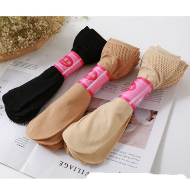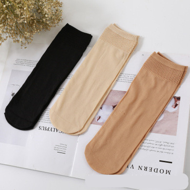 诸暨春秋菠萝口天鹅绒短丝袜女士纯色中筒网眼丝袜地摊短丝袜批发