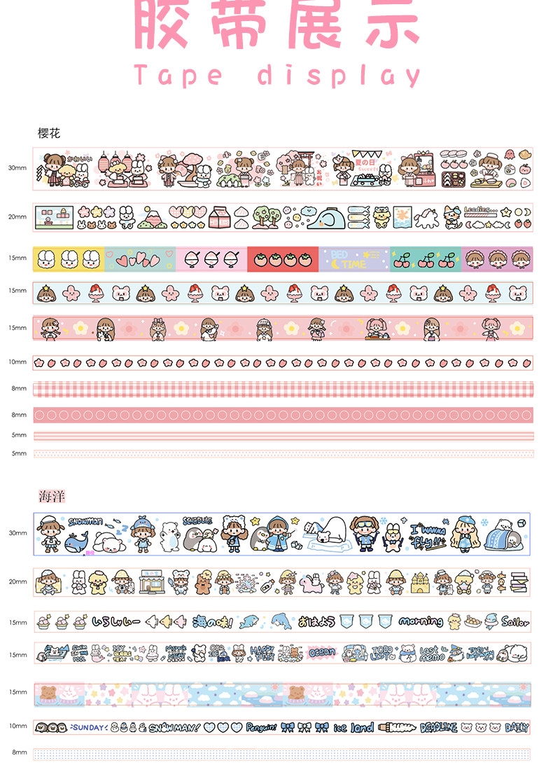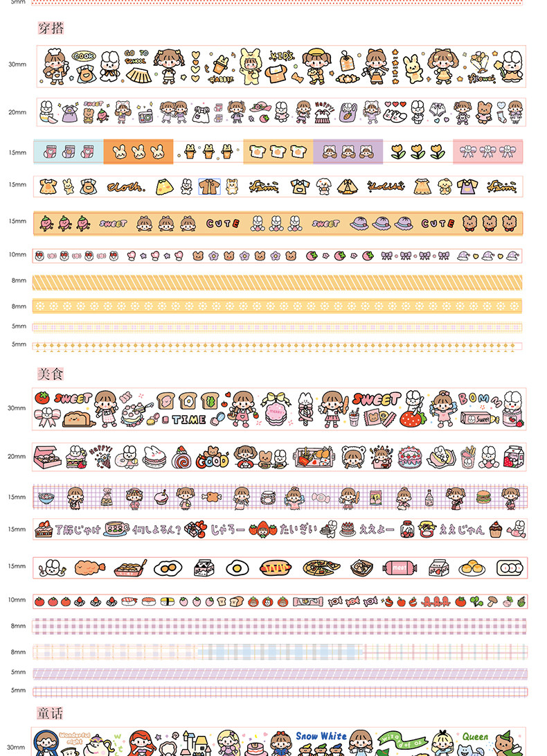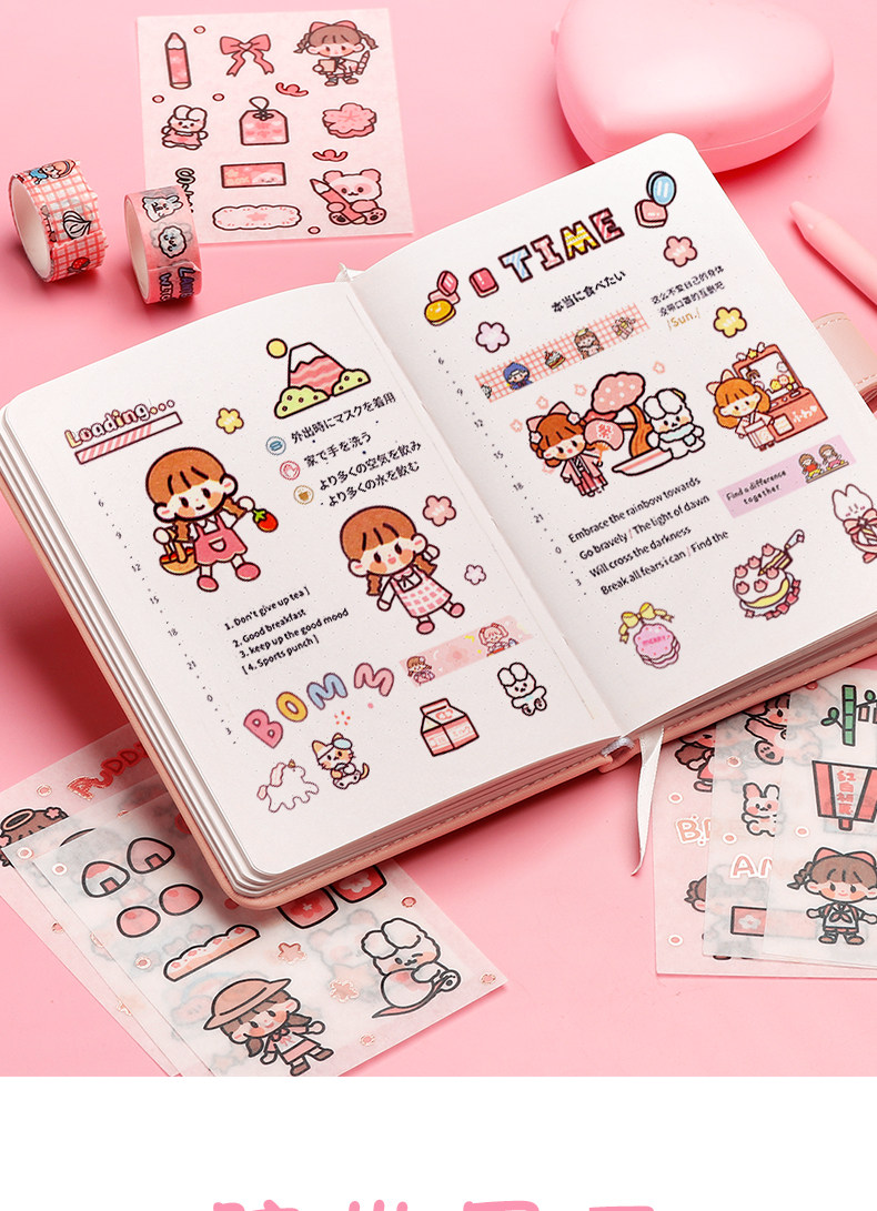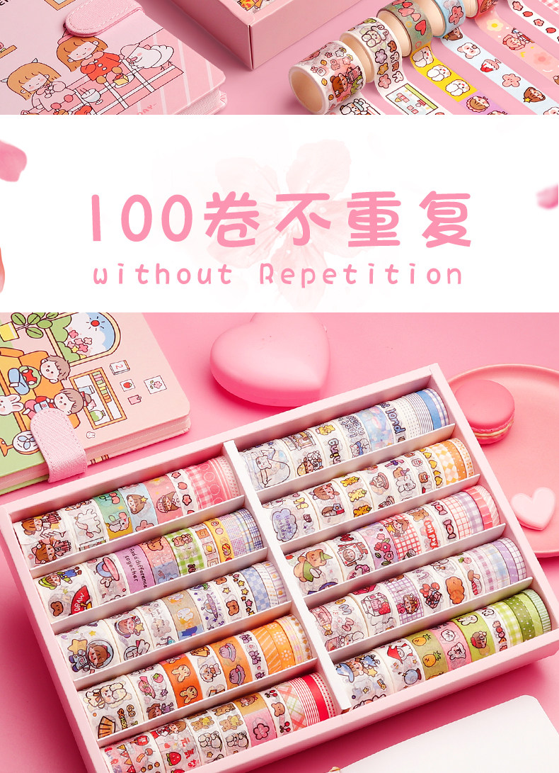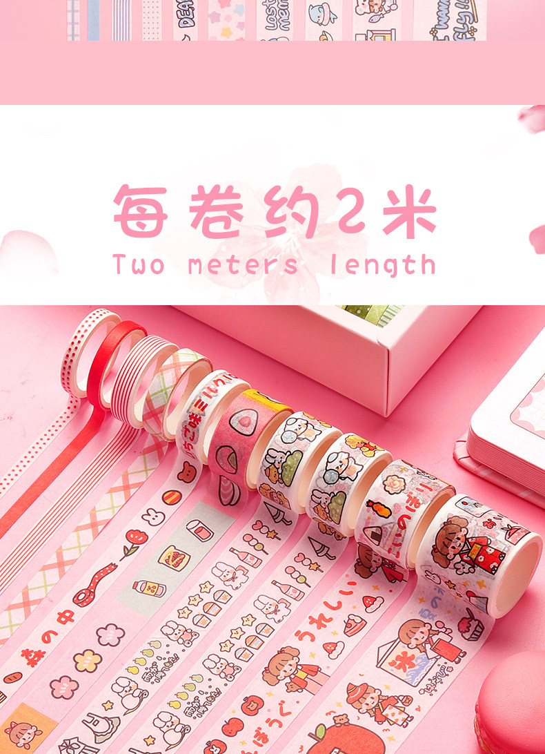 手账胶带贴纸胶卷套装彩色和纸礼盒古风卡通女孩手杖交代胶布批发