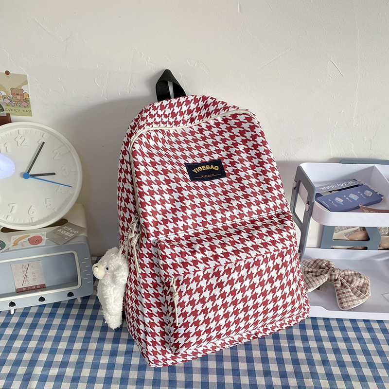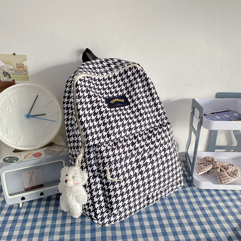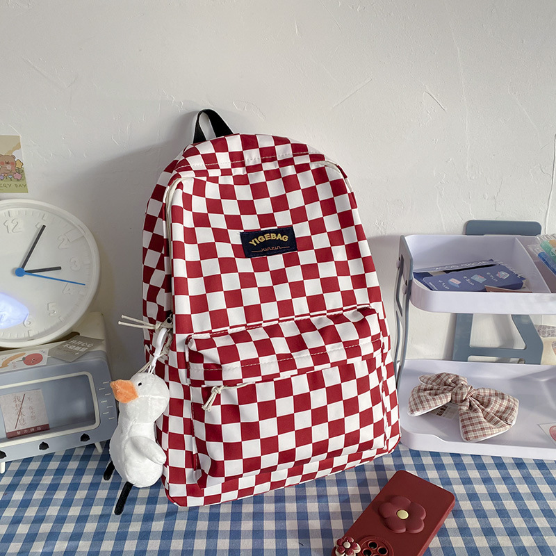 棋盘格韩版大容量2022春季少女时尚简约ins森系背包校园双肩包