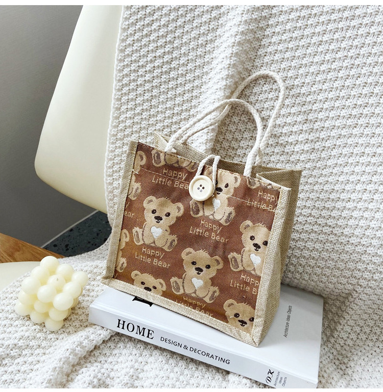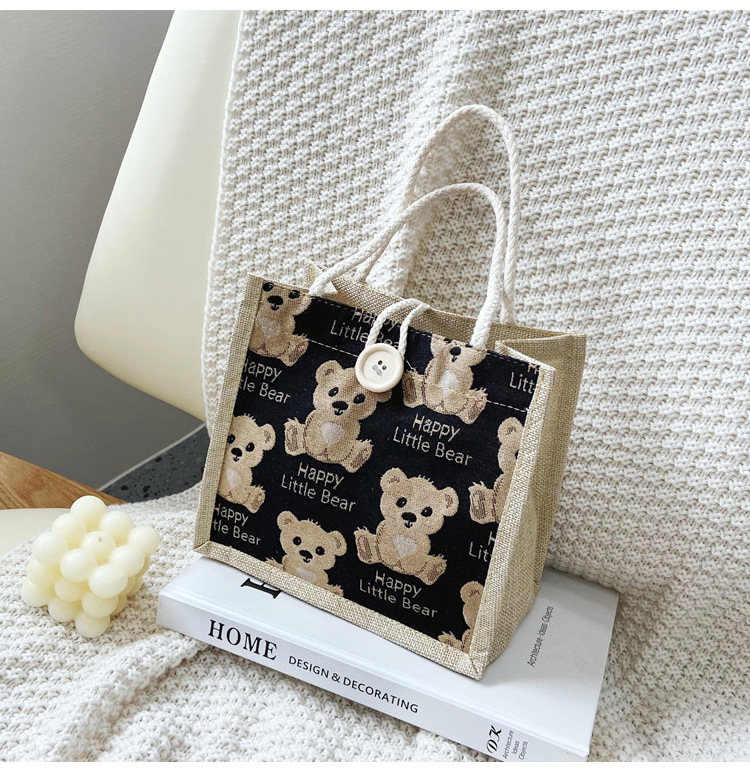亚麻手提小包包女卡通可爱小熊便当盒清新文艺学生补课袋