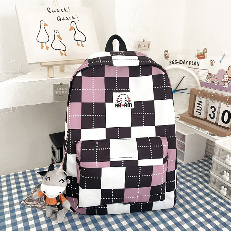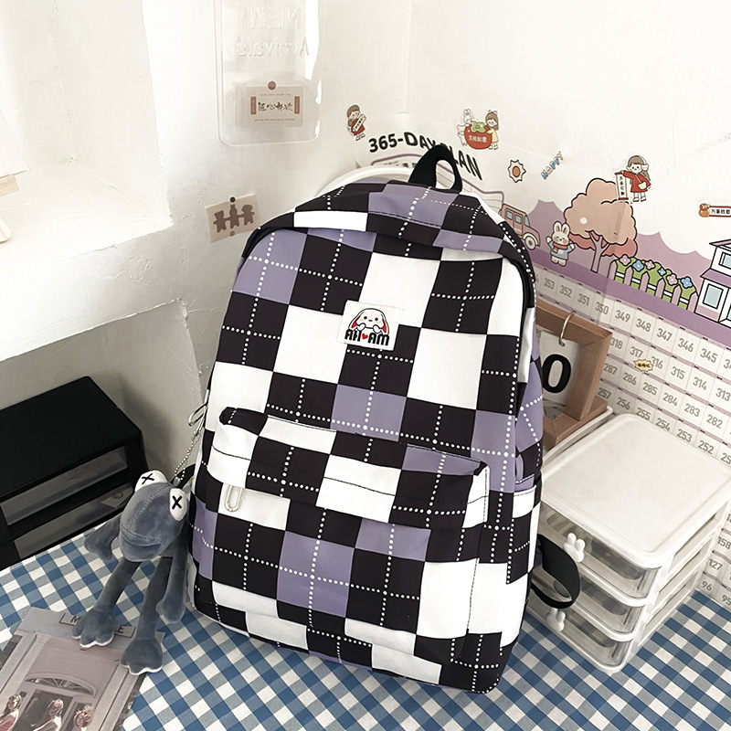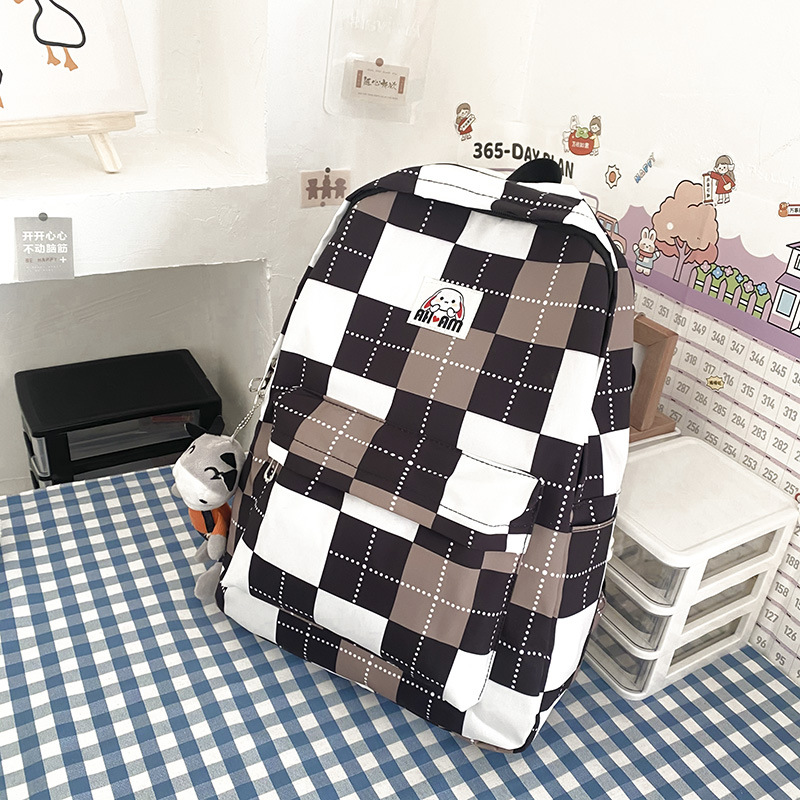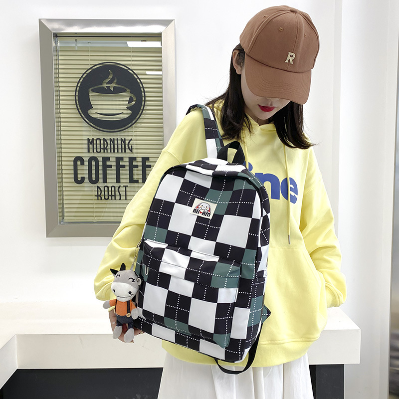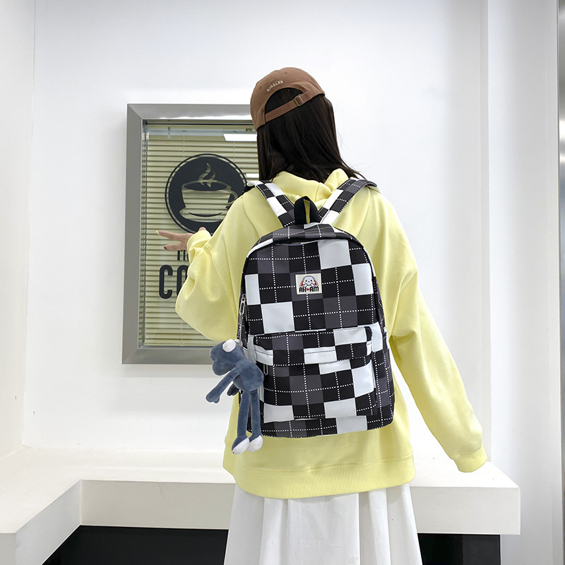 2022新韩版学生大容量书包 ins简约时尚棋盘格背包男女情侣双肩包
