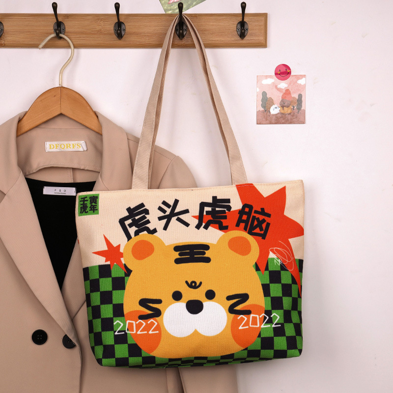 小清新ins可爱帆布包包女2022春单肩学生简约韩版百搭手提补习袋