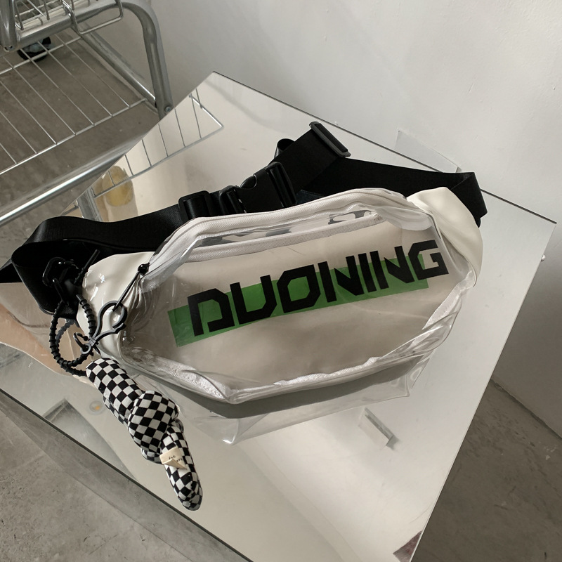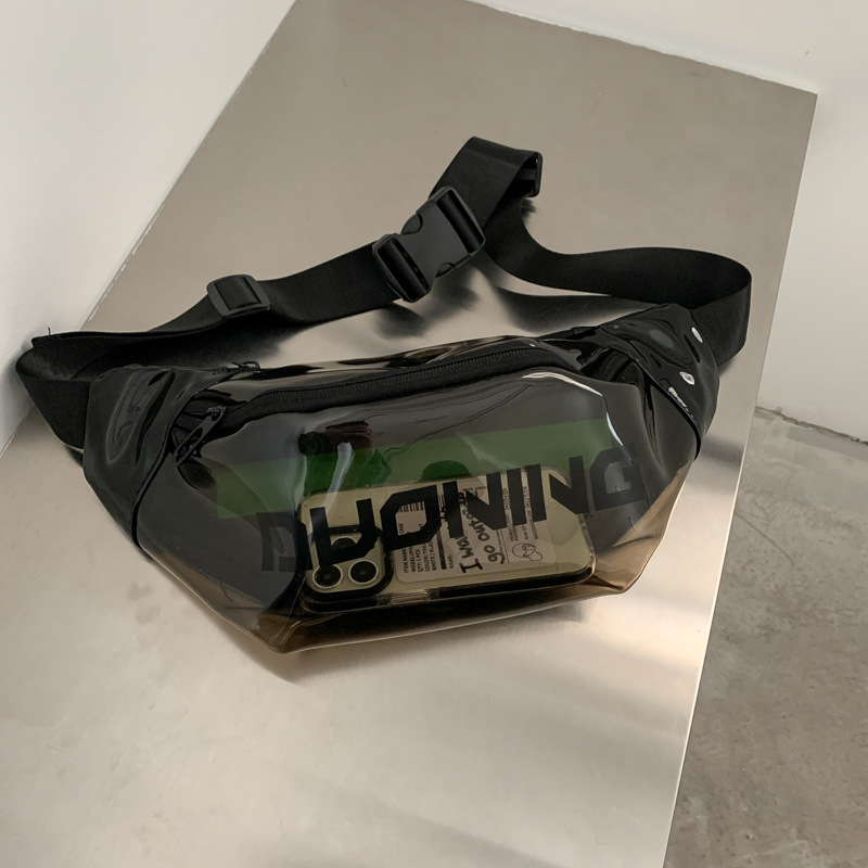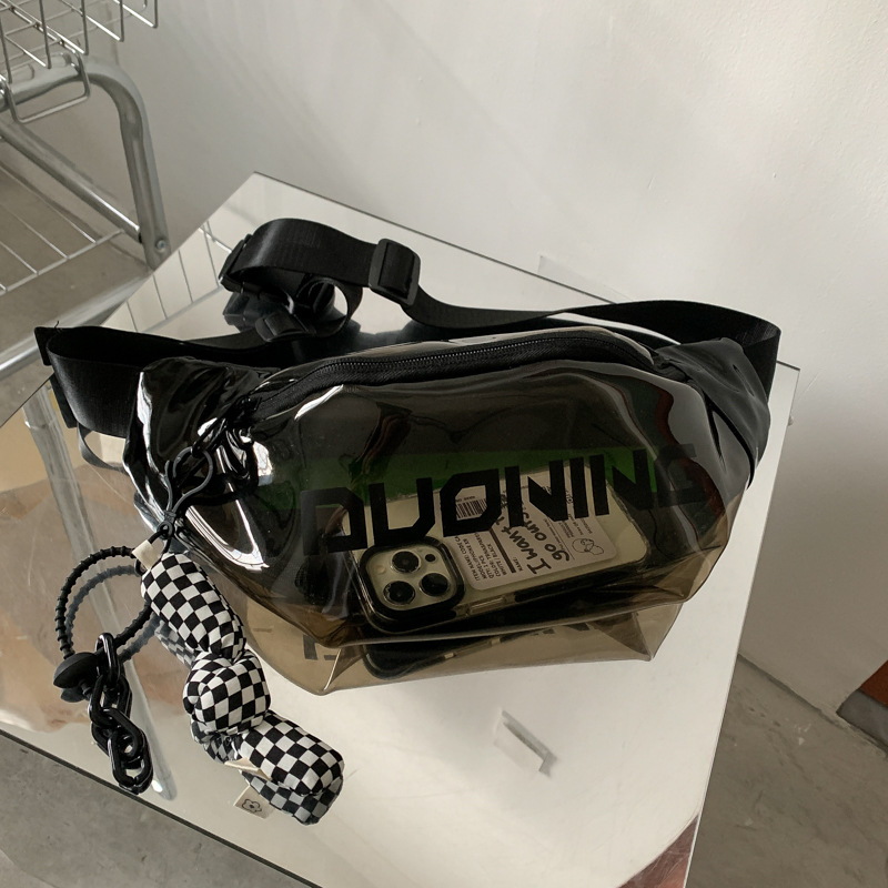 潮时尚休闲单肩腰包2022春新款百搭街头潮流个性pvc透明斜挎胸包