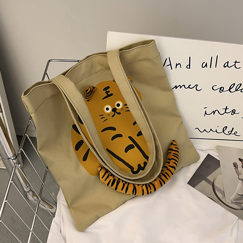 帆布包新款2022春夏学生时尚单肩包可爱萌老虎大容量单肩托特包