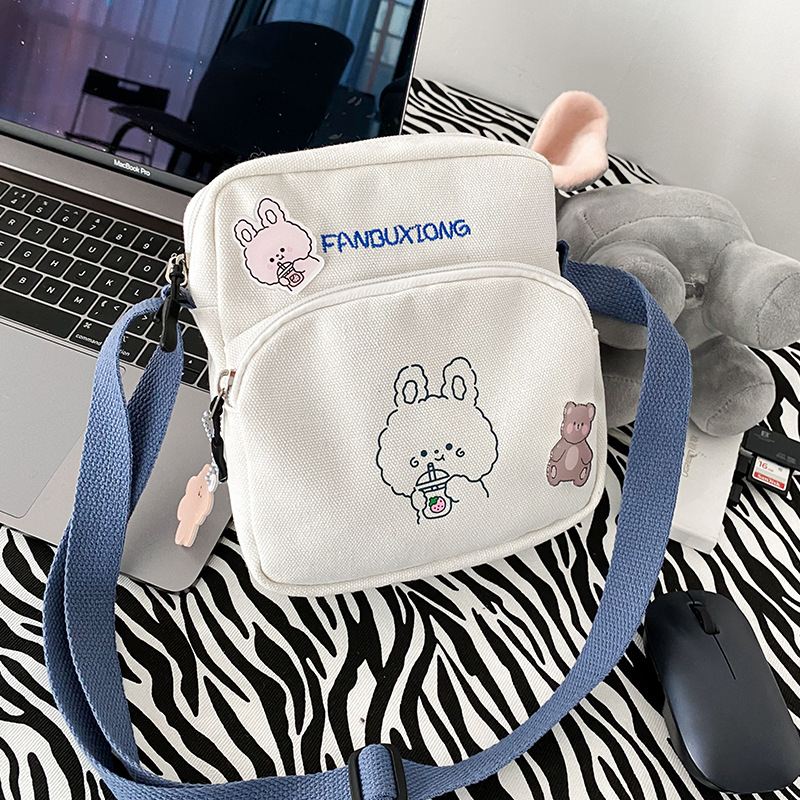 上新帆布包包女包2020日韩ins可爱小熊印花单肩包潮流时尚斜挎包