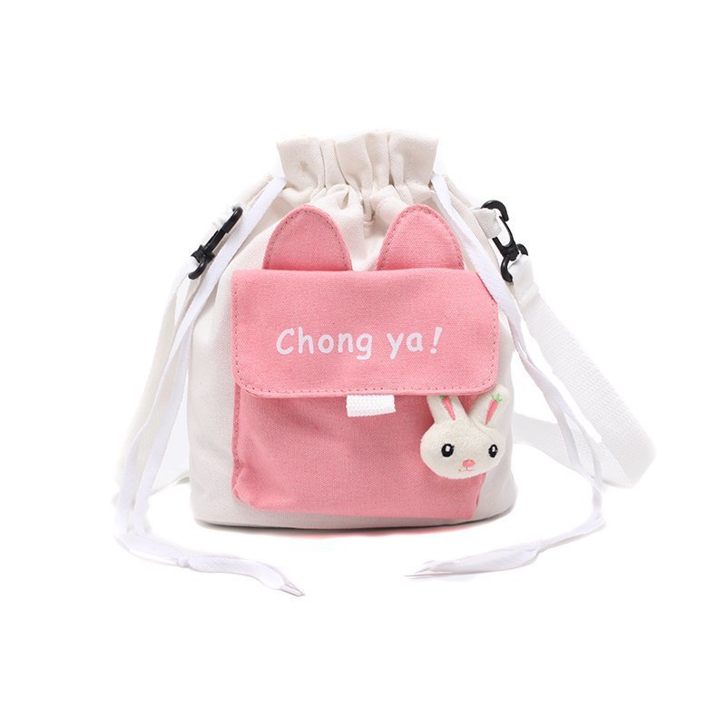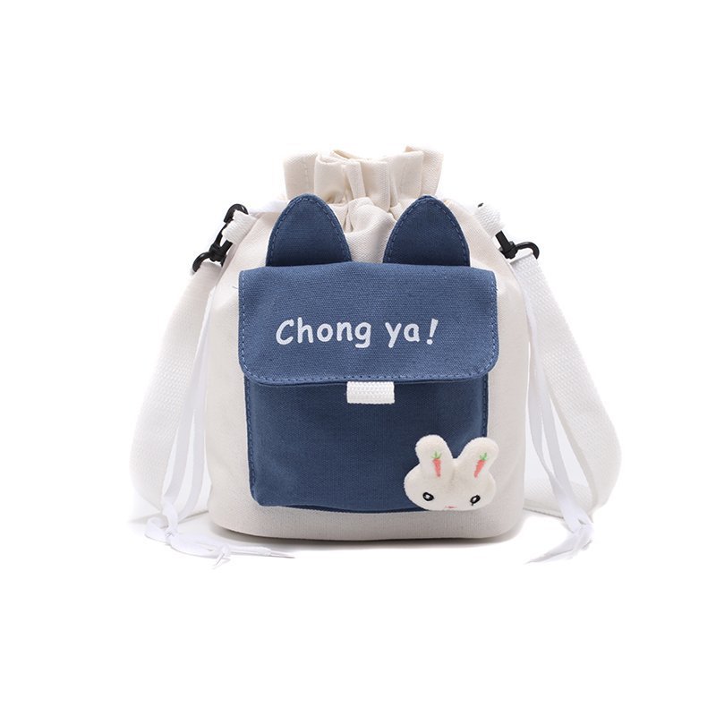 创意字母冲鸭帆布包女潮韩原宿帆布斜挎包学生抽带水桶包