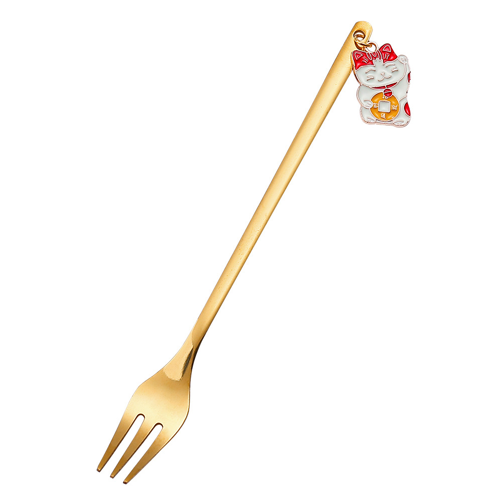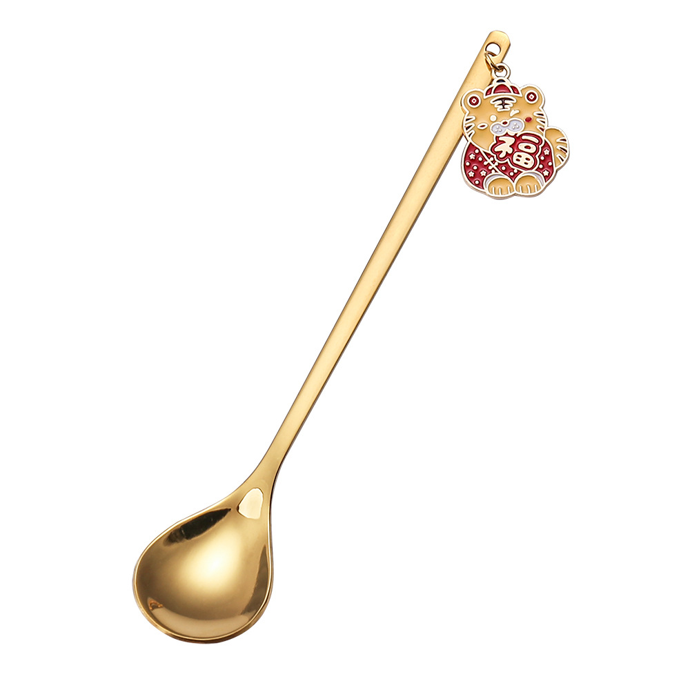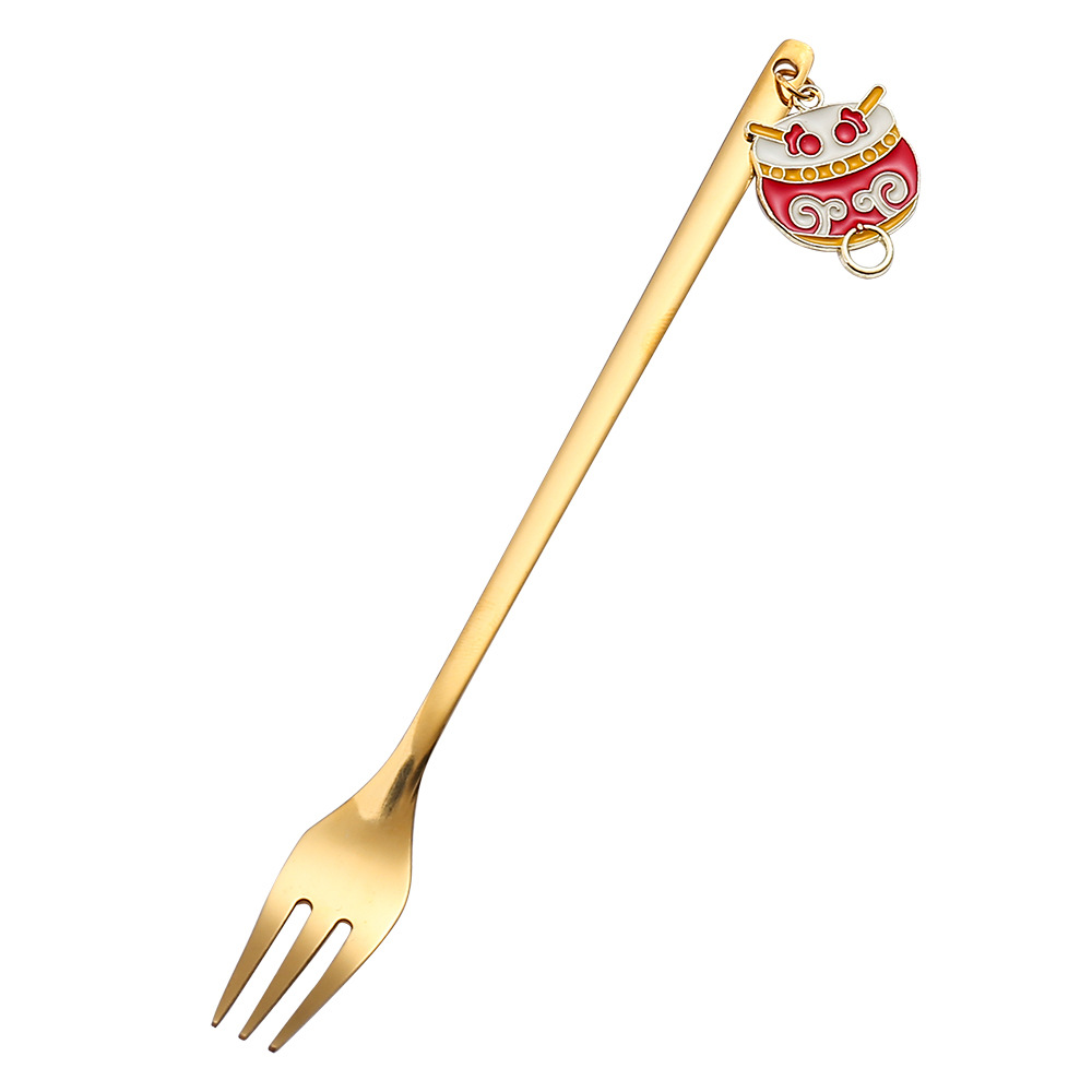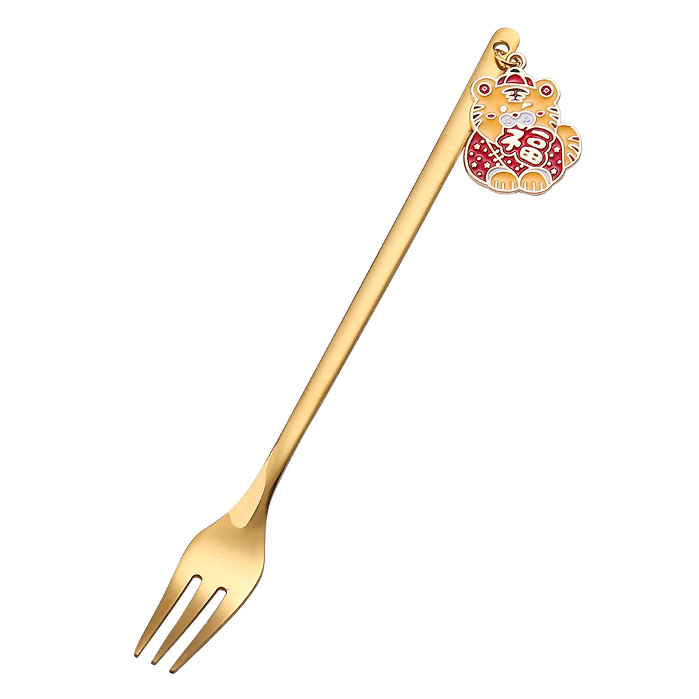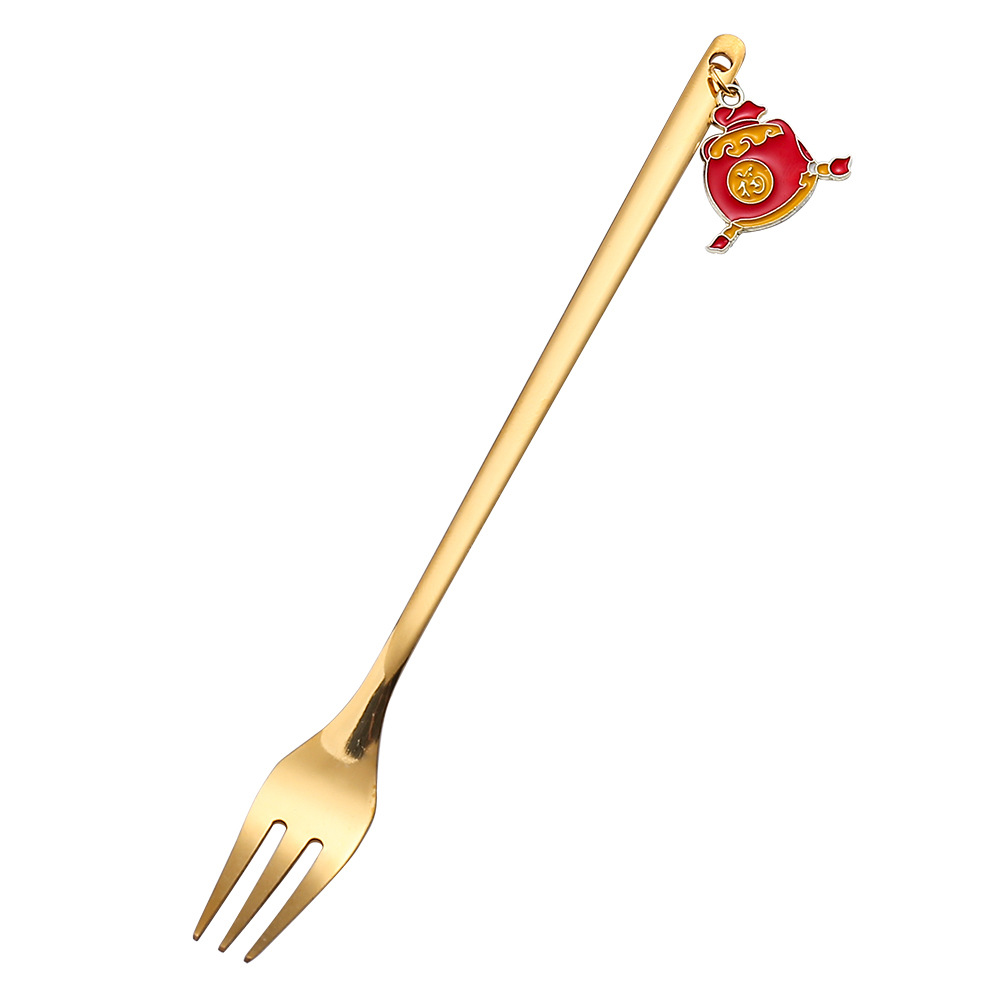 A 创意吊坠咖啡勺水果叉 新年礼品餐具套装 甜品勺叉 不锈钢勺子
