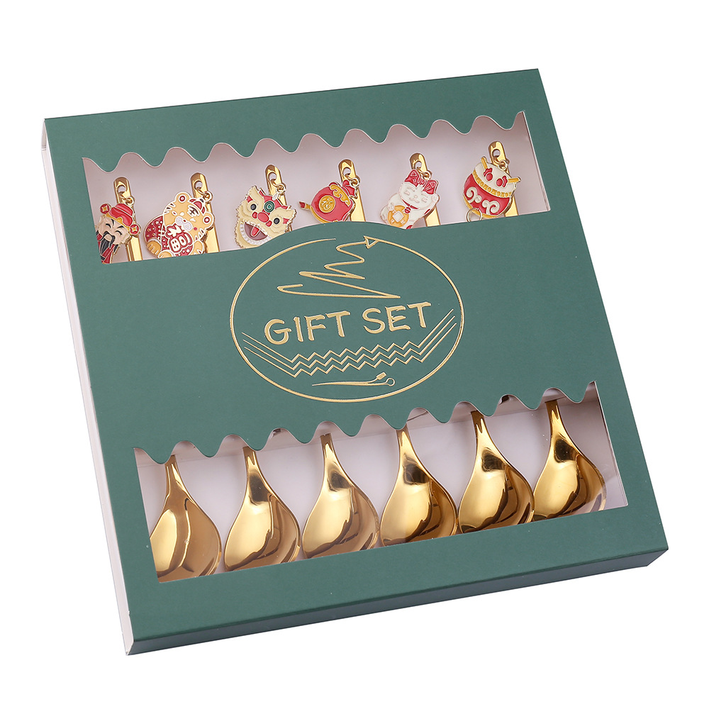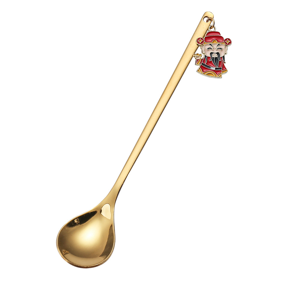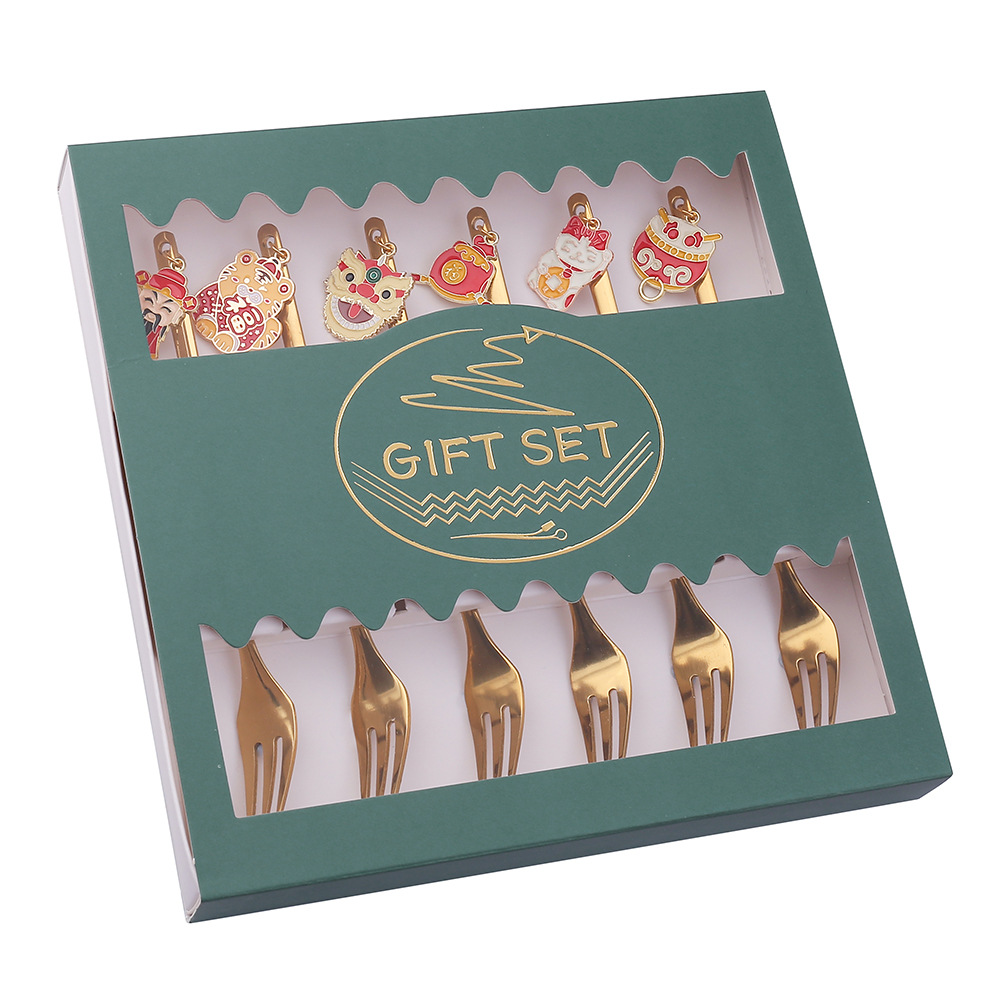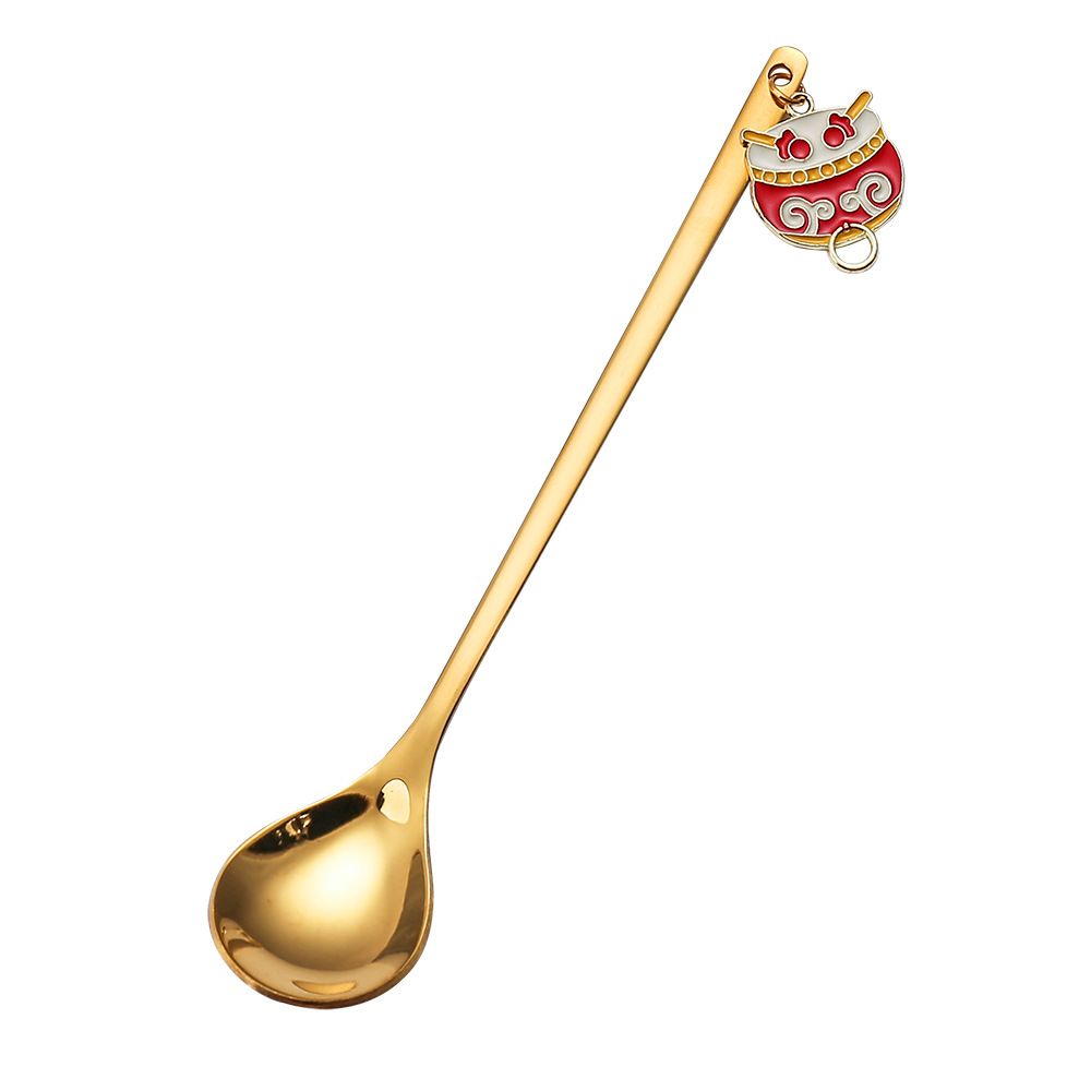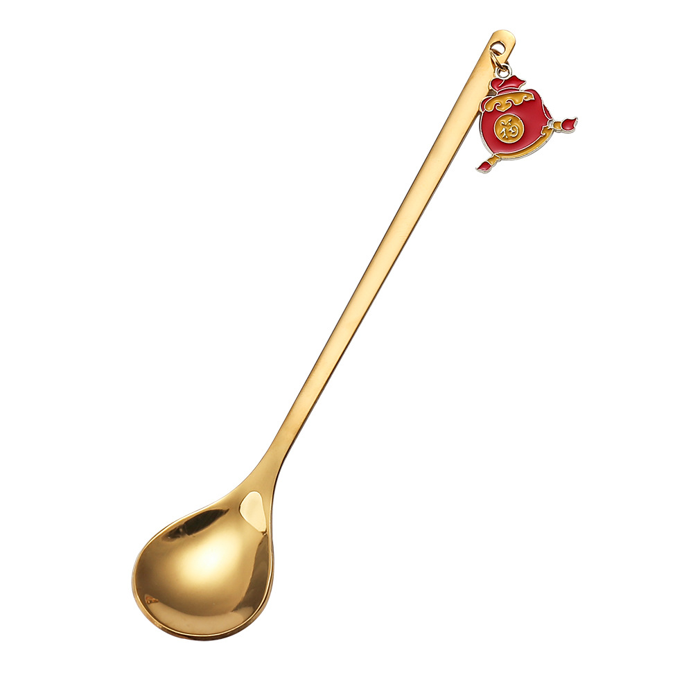 A 创意吊坠咖啡勺水果叉 新年礼品餐具套装 甜品勺叉 不锈钢勺子