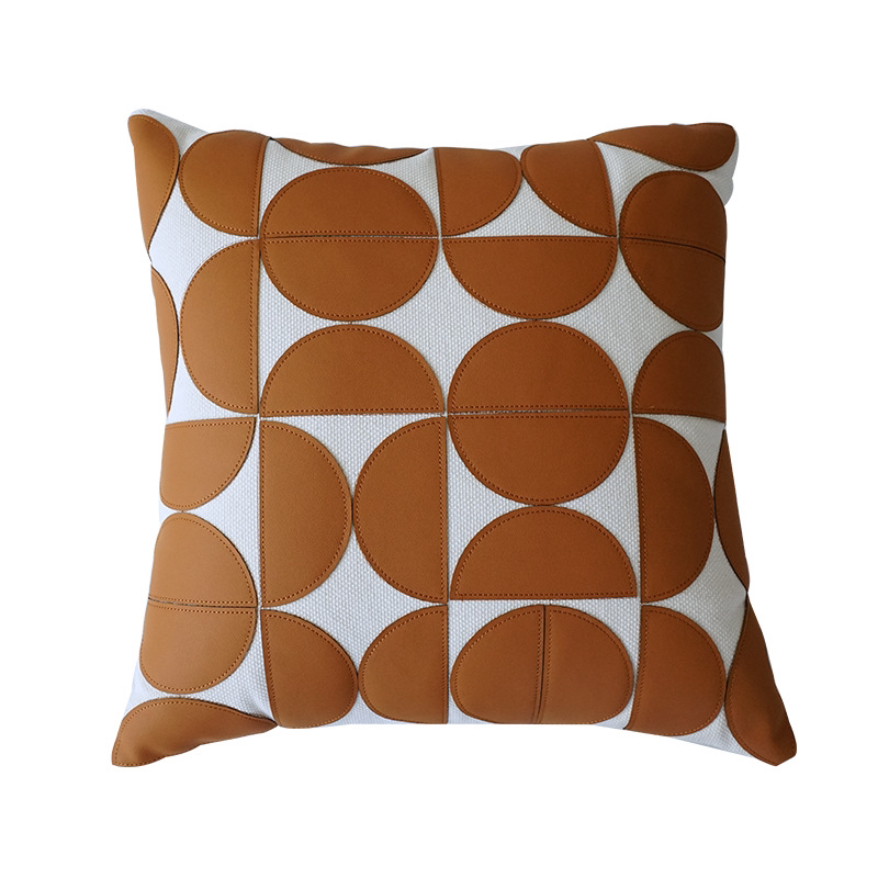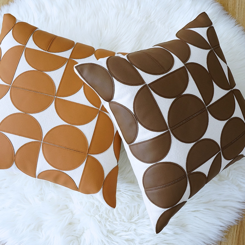 涤棉贴绣pu皮抱枕套轻奢风格床头靠垫客厅沙发抱枕靠垫套批发