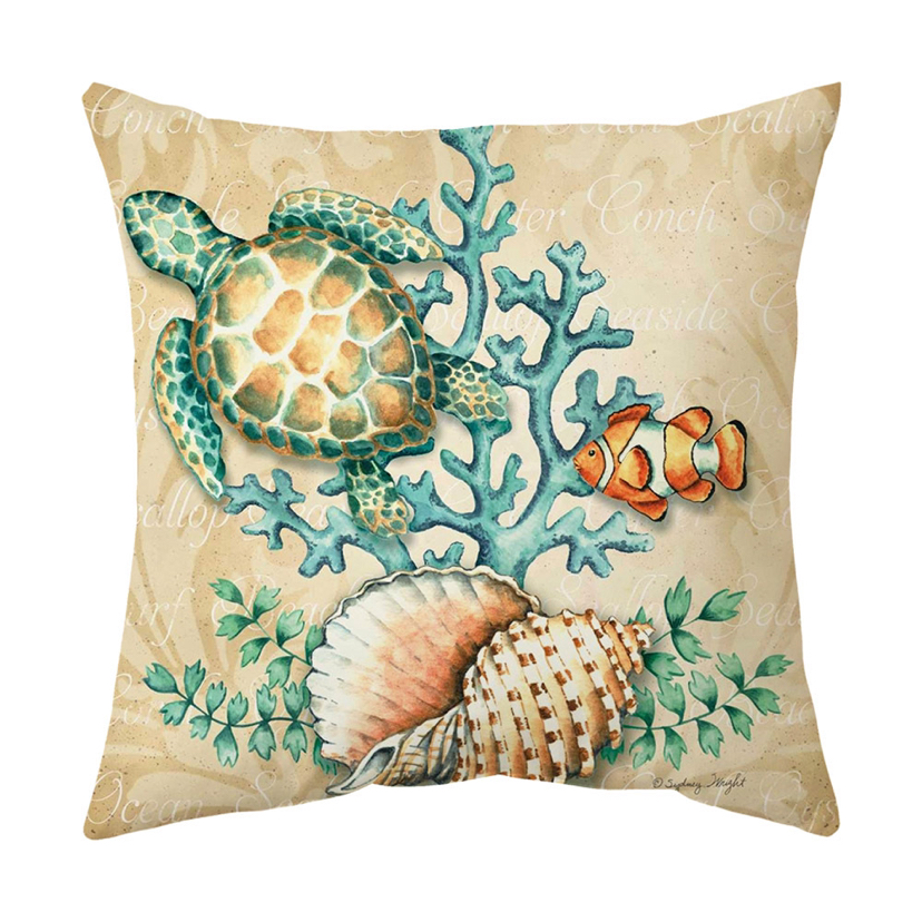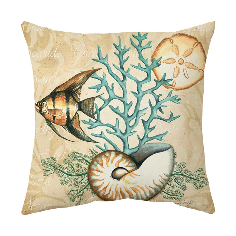 跨境北欧超复古海洋生物装饰抱枕靠垫套花卉艺术靠枕坐垫抱枕套 h
