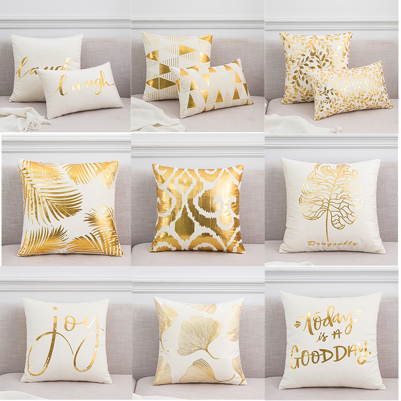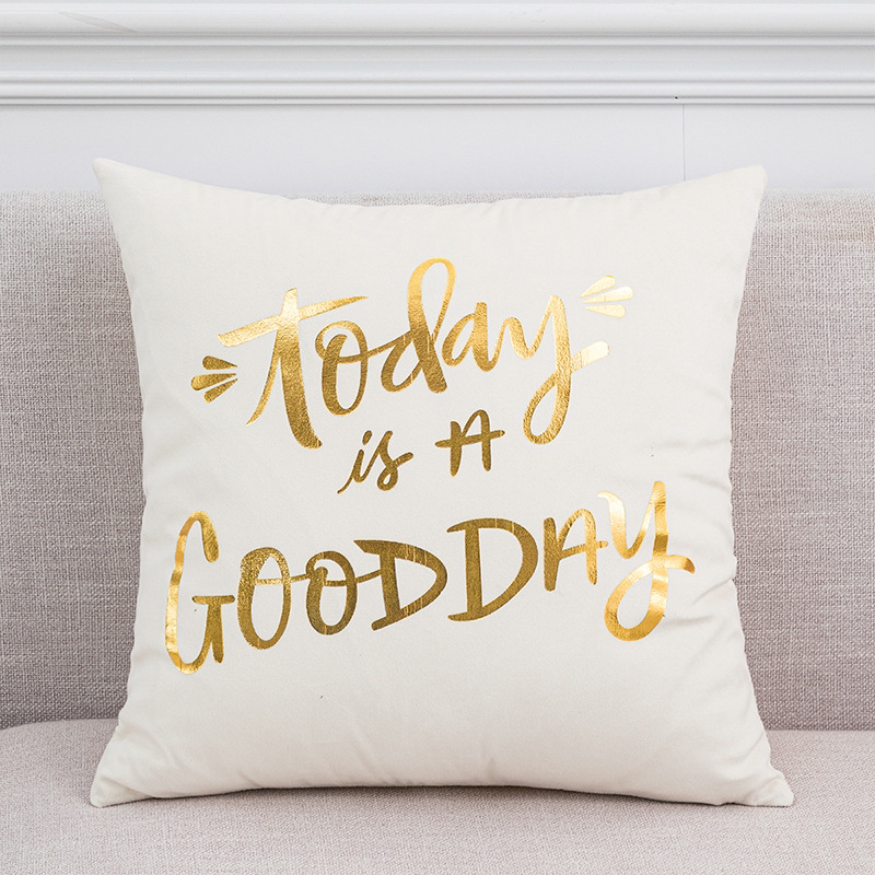 厂家直销居家客厅沙发靠枕靠背北欧现代烫金荷兰绒抱枕靠垫套批发