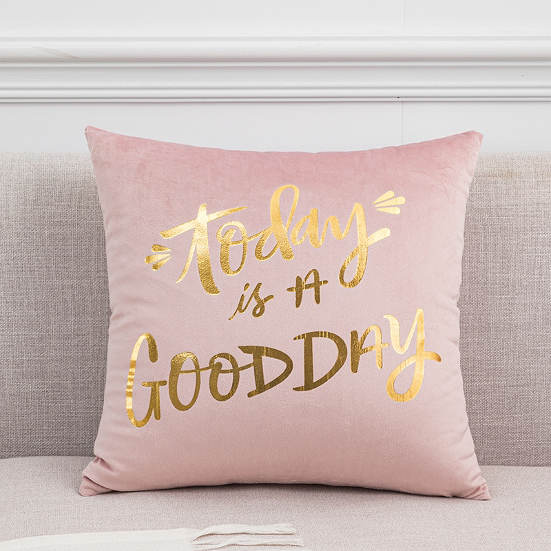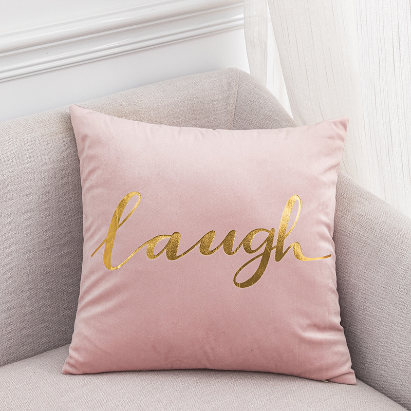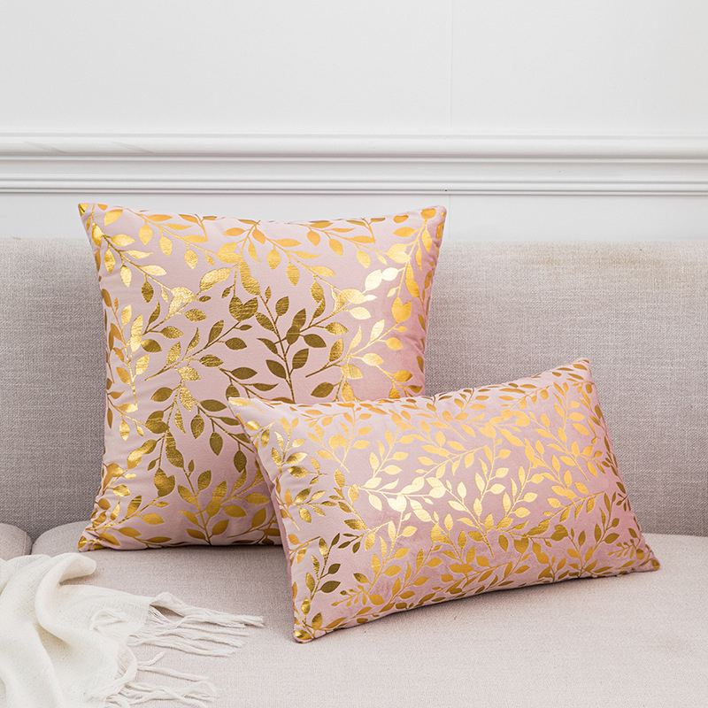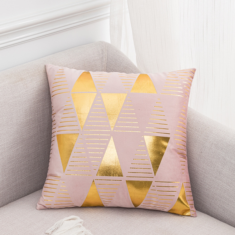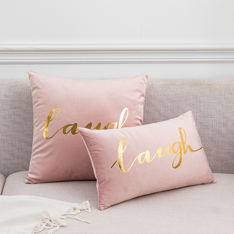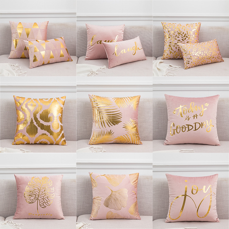 亚马逊跨境热销北欧现代居家沙发抱枕靠枕套烫金粉色靠垫腰枕批发