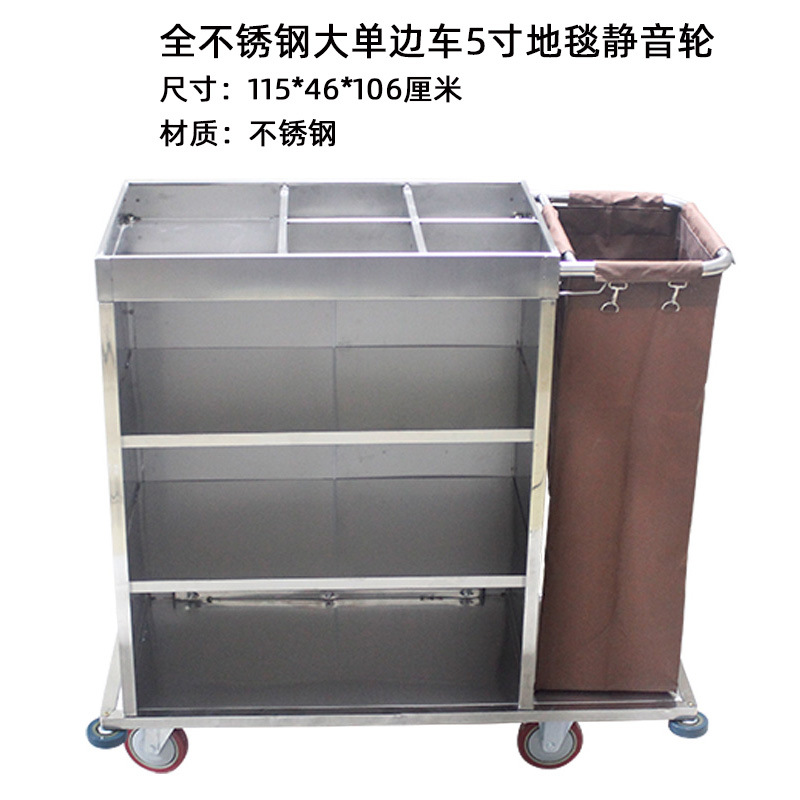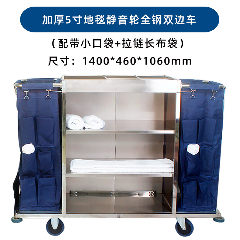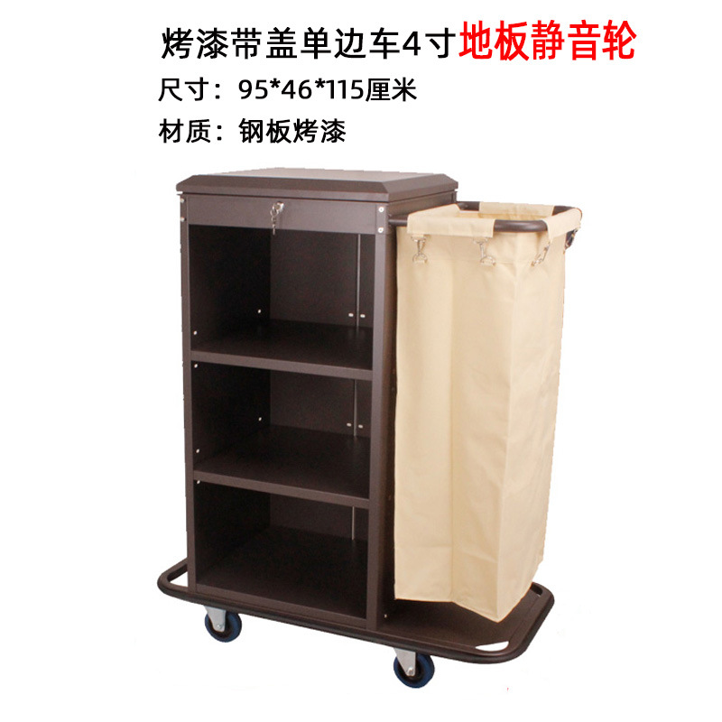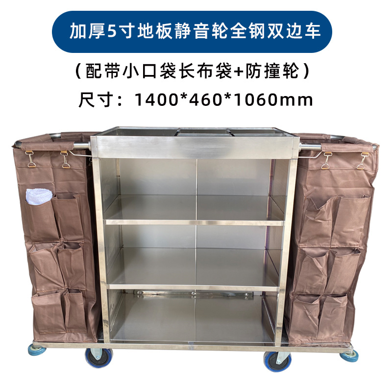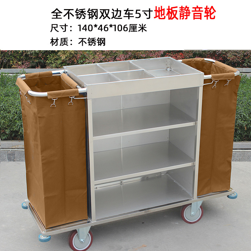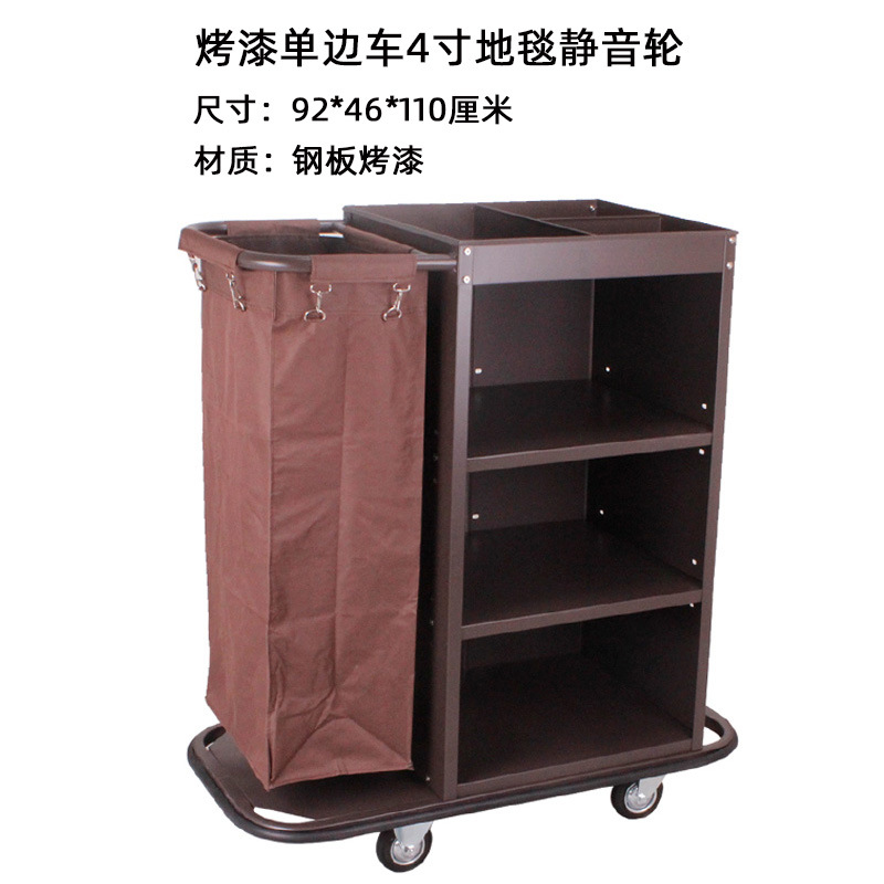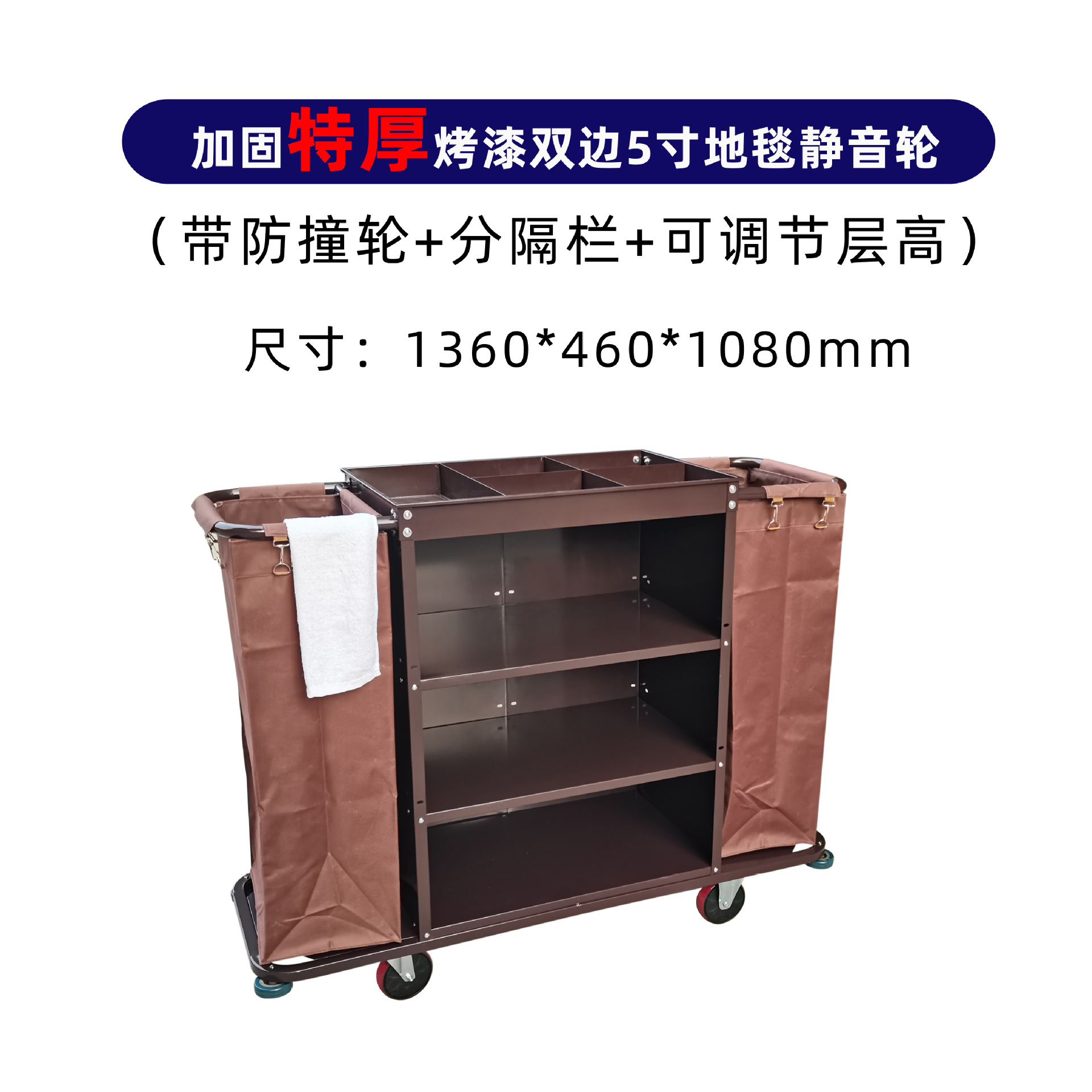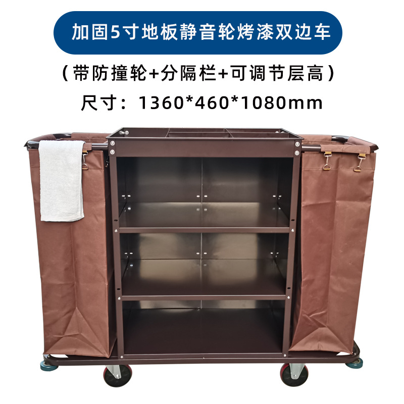 布草车酒店宾旅馆烤漆客房口双边楼层清洁工作收集打扫手推服务车