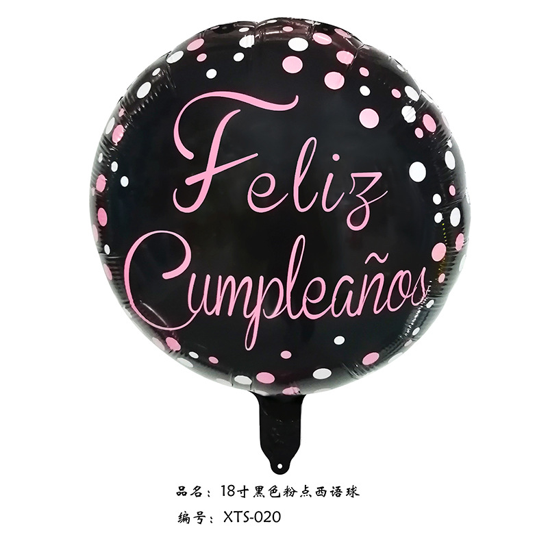 厂家直销18寸西语圆形铝膜气球 生日派对装饰圆球多图案铝箔气球