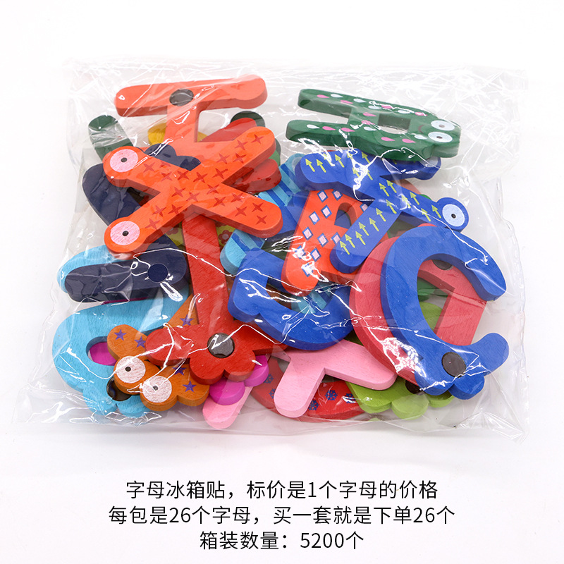 木制字母冰箱贴卡通木质磁性冰箱贴英文创意认知儿童学习早教玩具