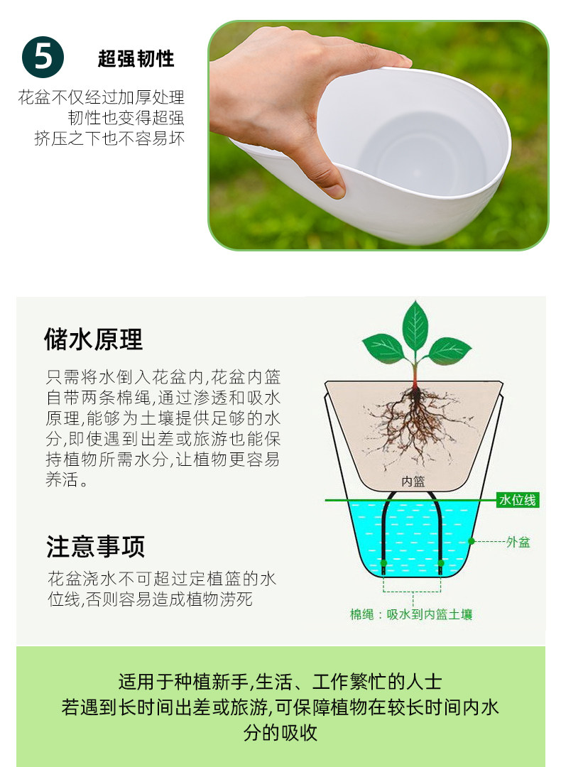 懒人花盆 自动吸水仿陶塑料盆 绿植水培大号树脂盆黑白彩色恐龙蛋