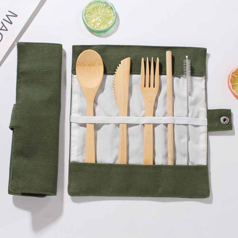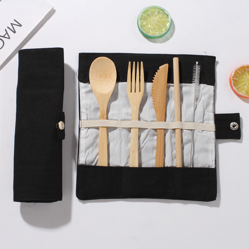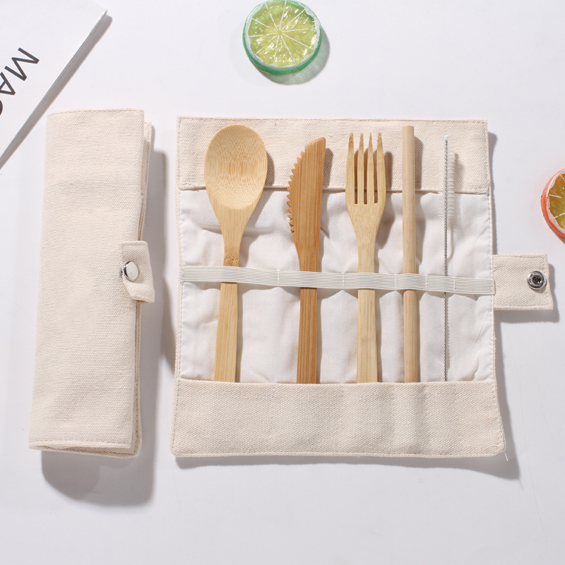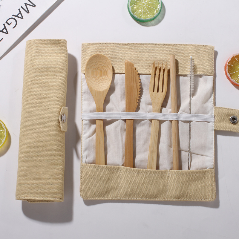 现货厂家批发棉帆布竹木制品包装袋便携式户外餐具袋印刷LOGO