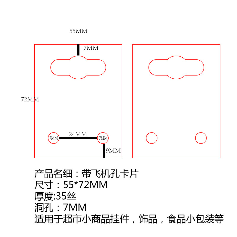 通用透明pvc pet饰品耳环项链搭配卡纸卡片带飞机孔55*72mm卡片