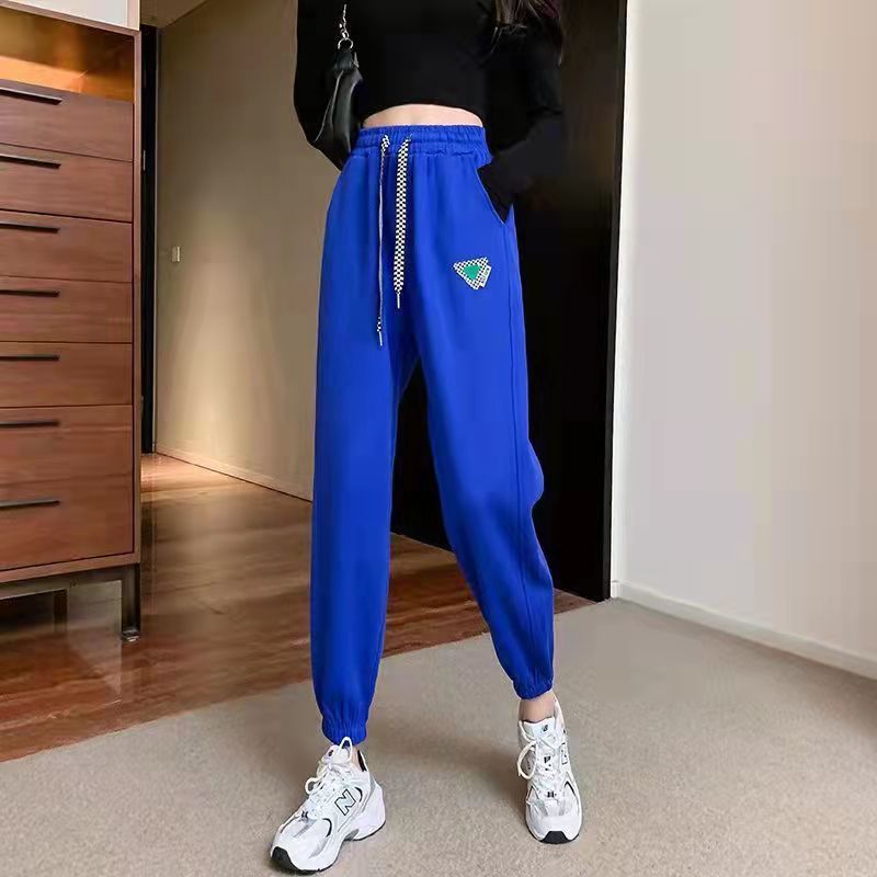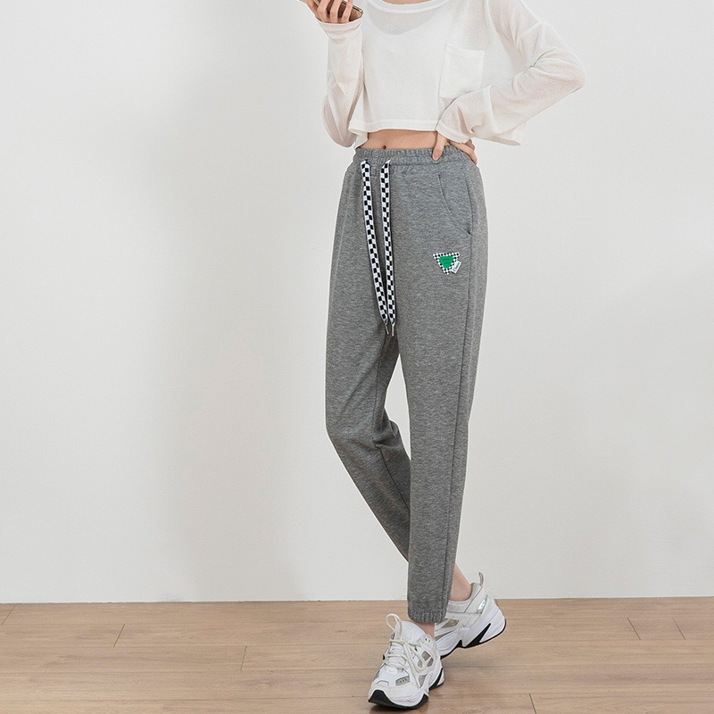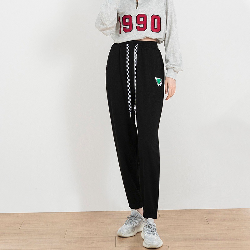 2022春秋新款休闲裤女百搭宽松束脚裤小蜜蜂棋盘格元素运动裤批发