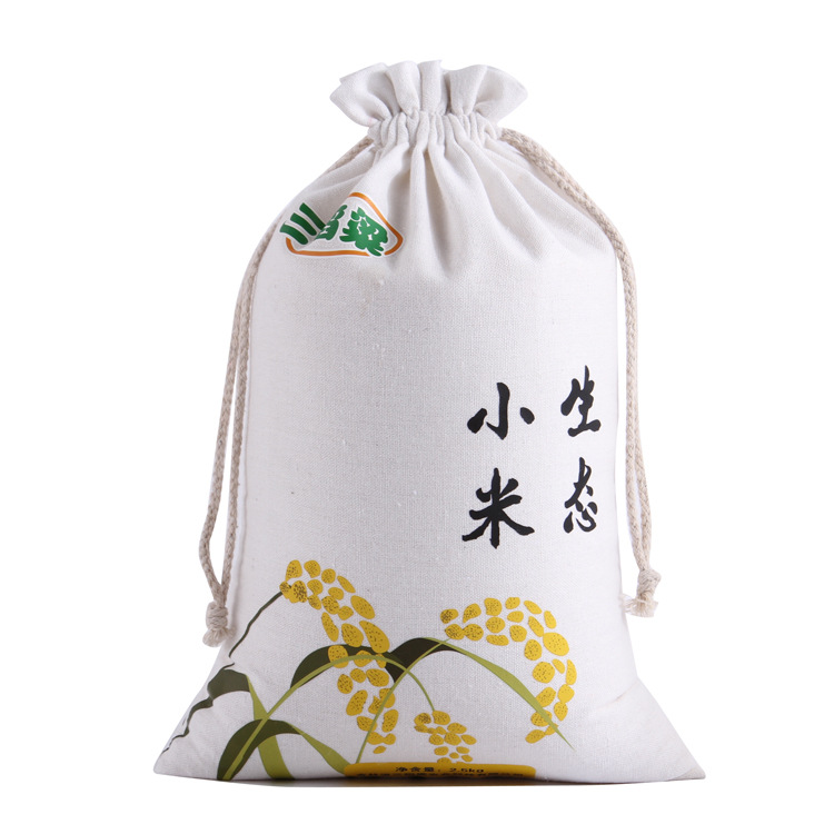厂家专业定制棉布抽绳束口袋5斤斤米袋礼品饰品包装袋印刷LOGO