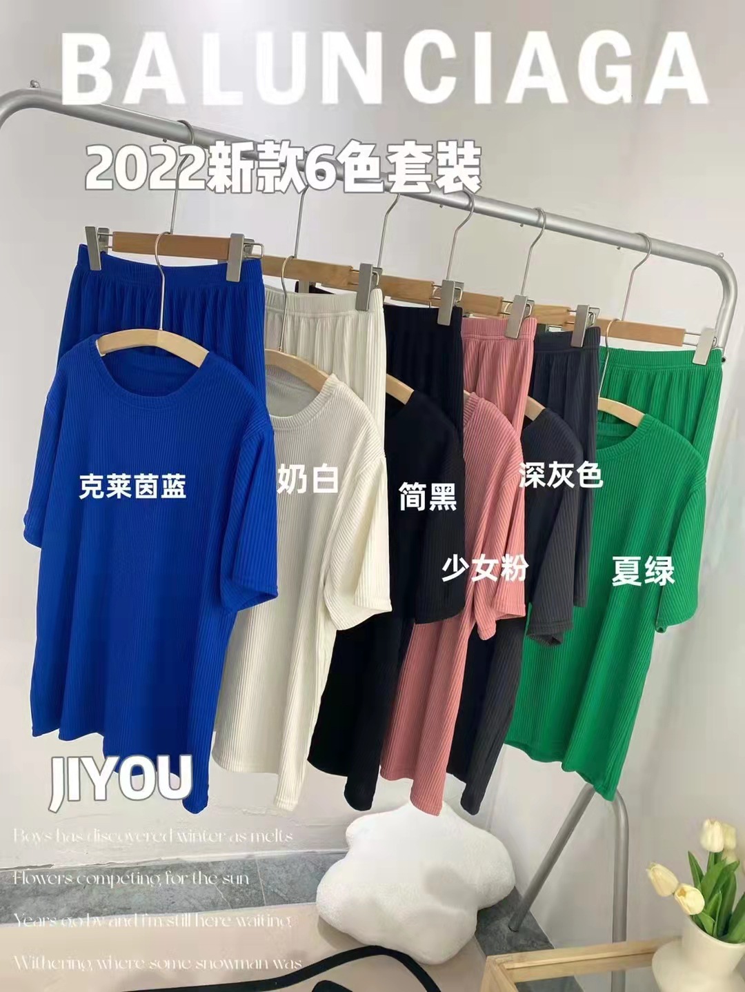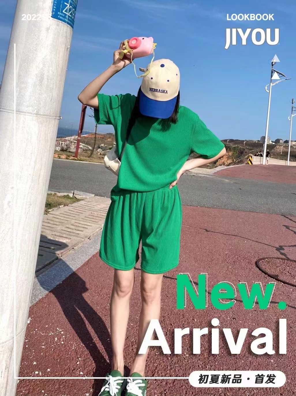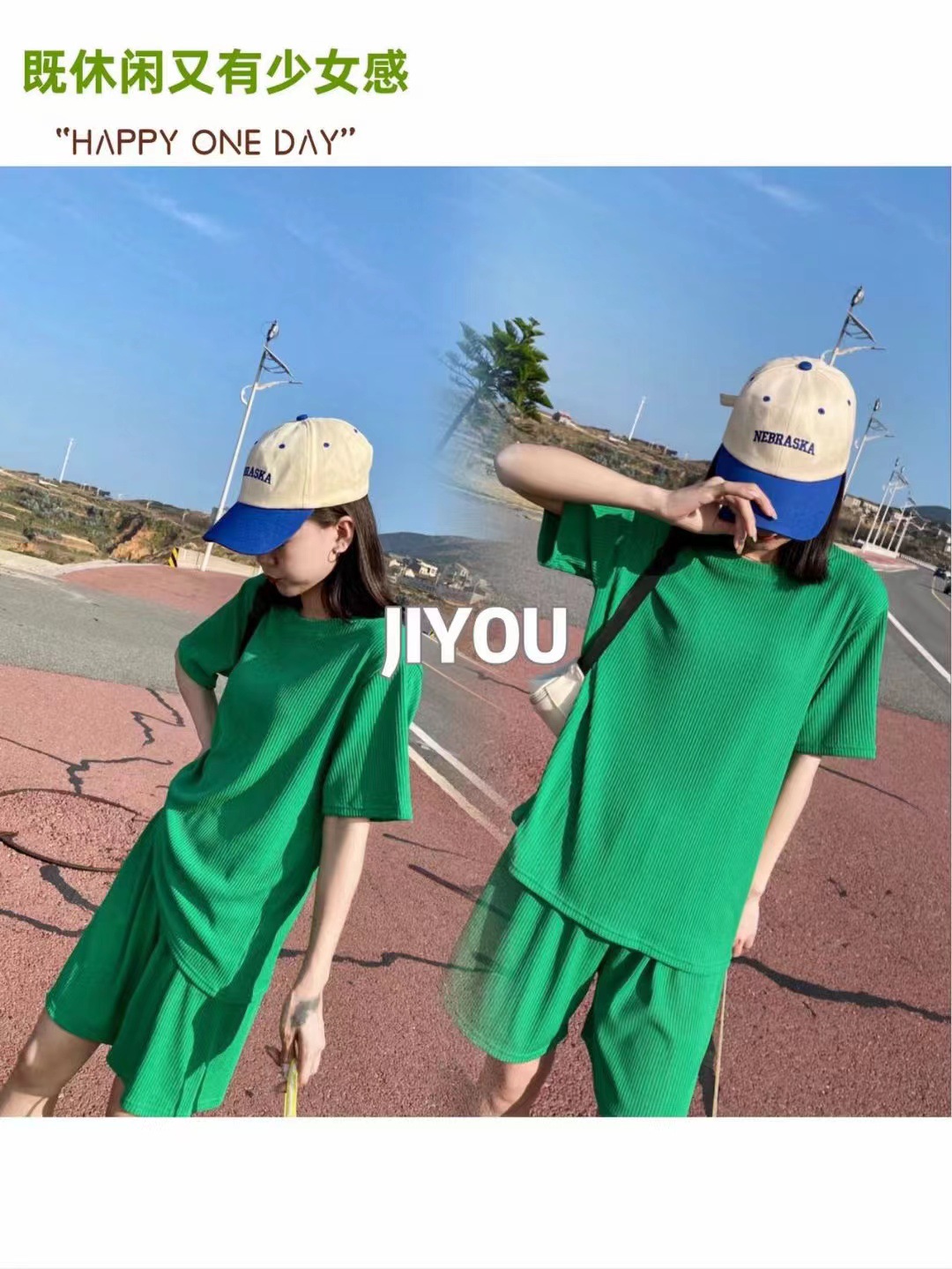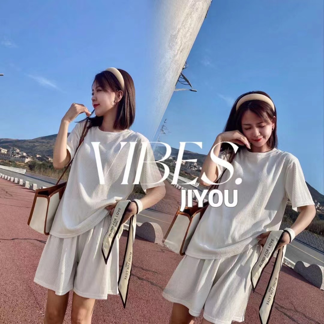 新款JIYOU记柚6色套装简约百搭时尚短袖女两件套居家日常休闲套装