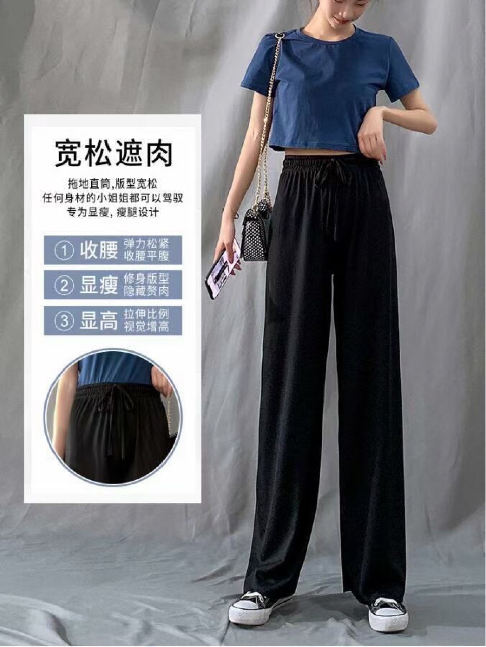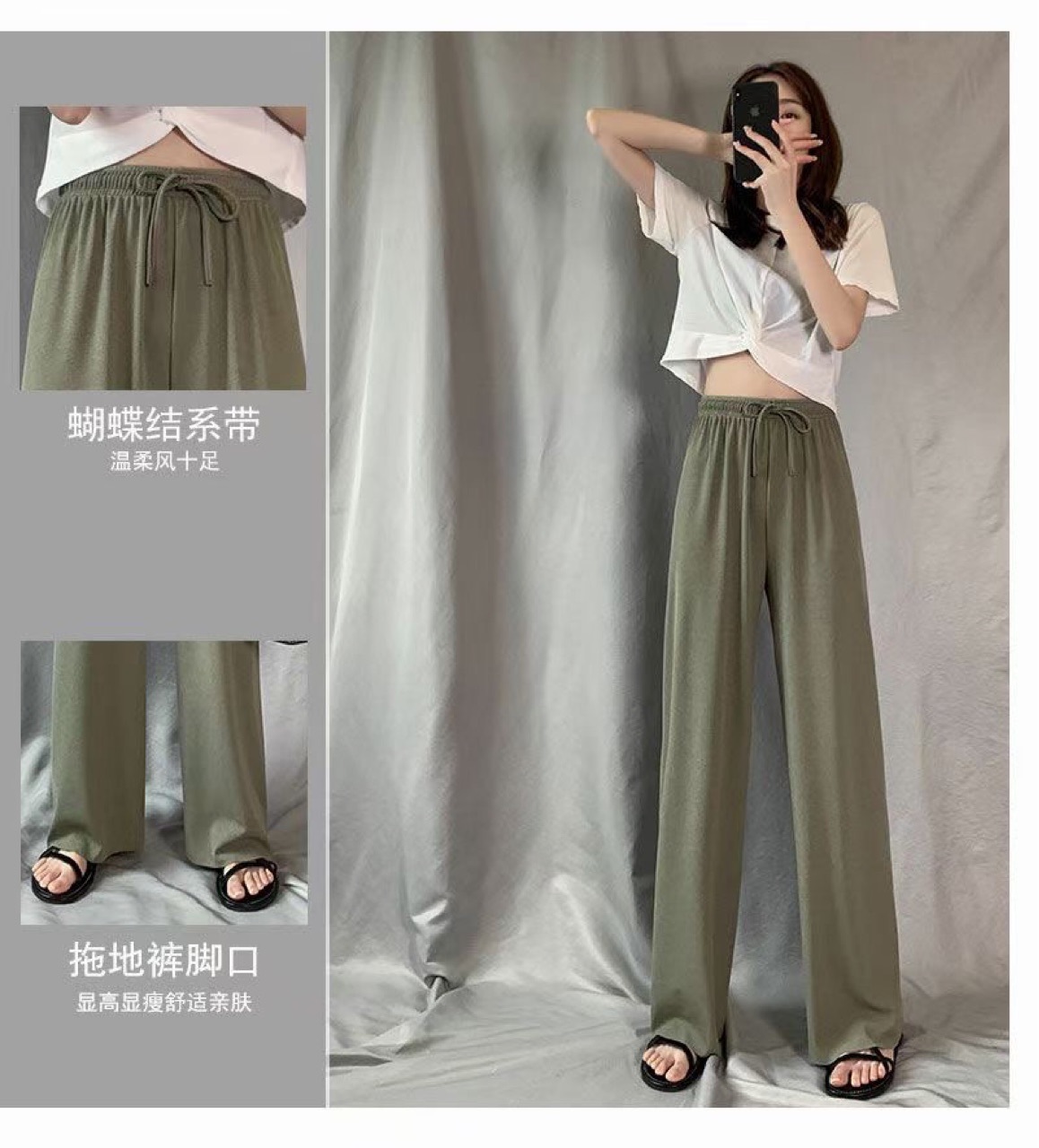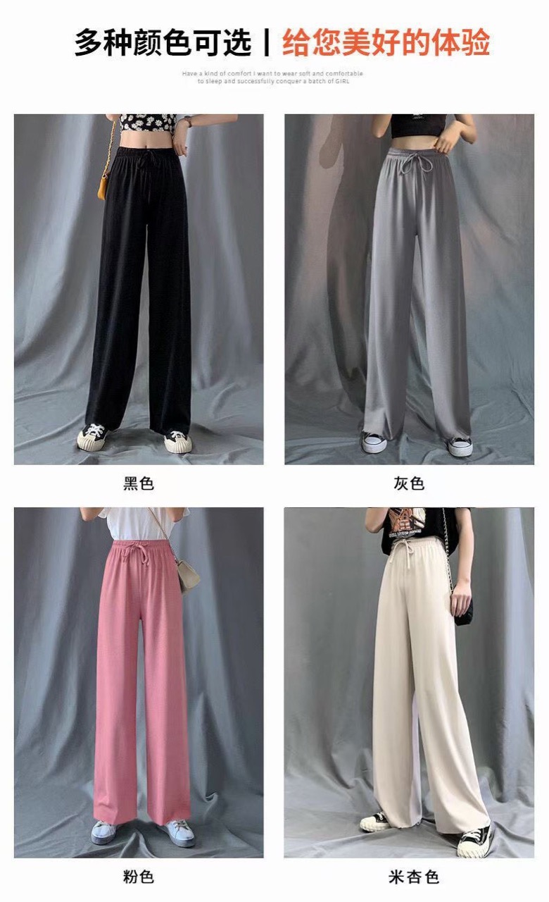 春季冰丝都市休闲高腰长裤百搭阔腿裤直筒型韩版宽松裤子