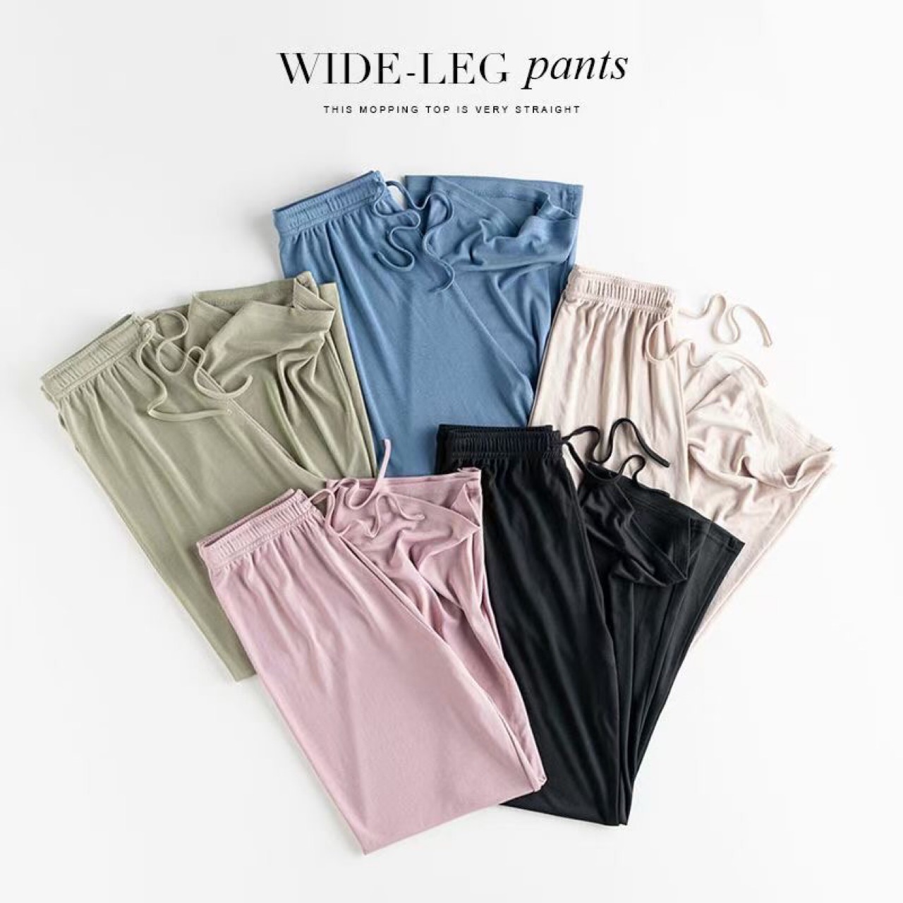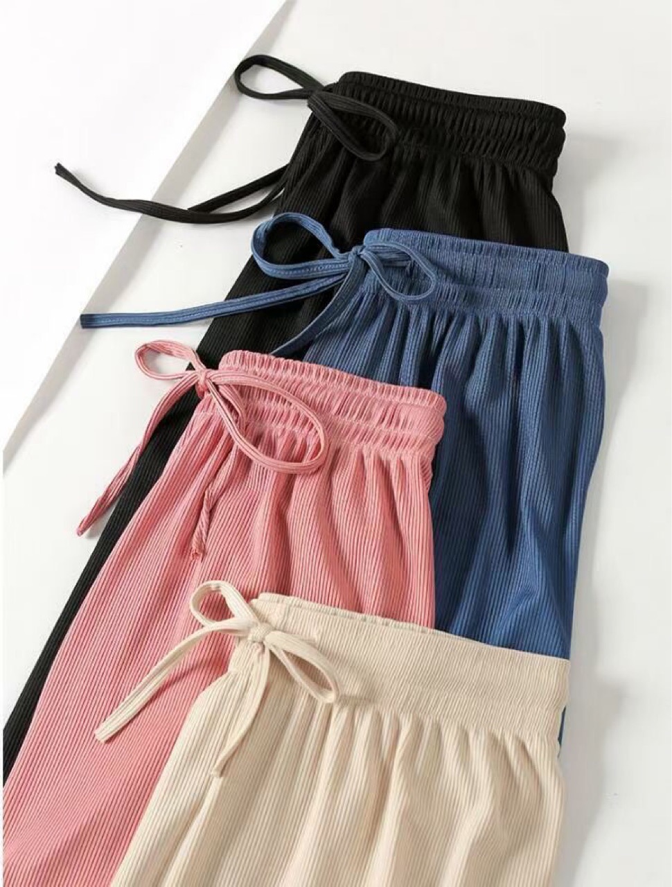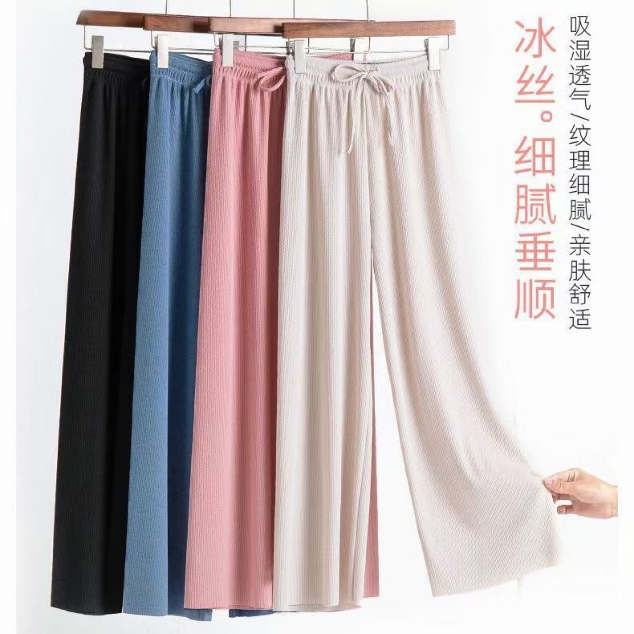 春季冰丝都市休闲高腰长裤百搭阔腿裤直筒型韩版宽松裤子