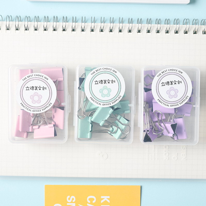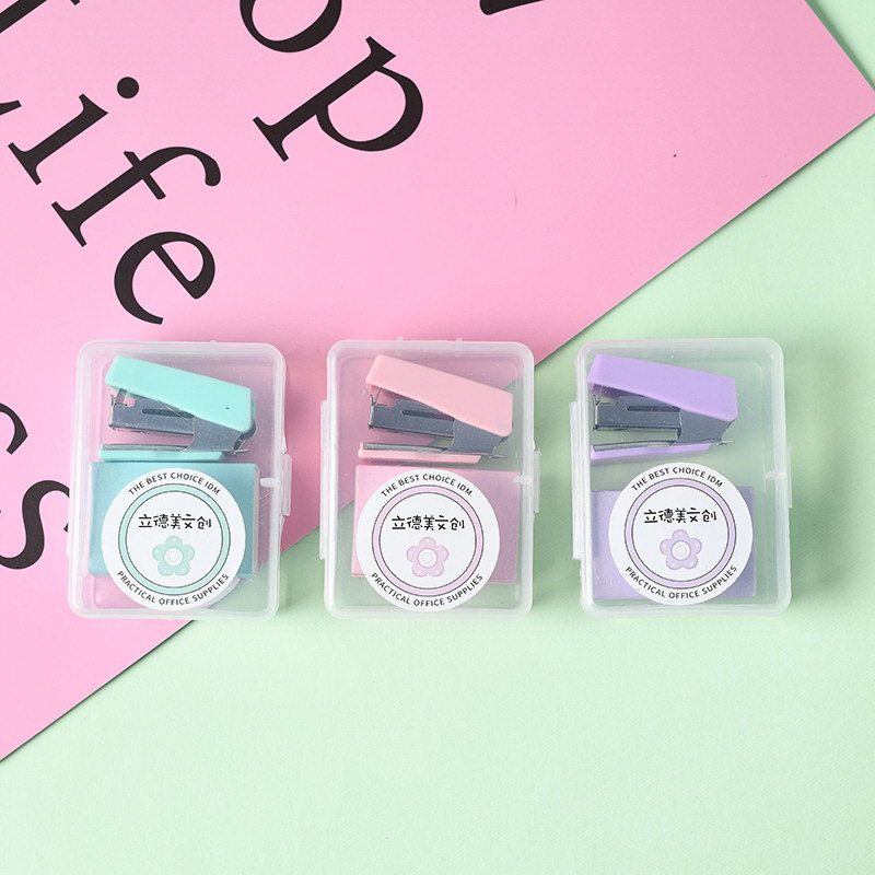 立德美文创小清新马卡龙办公用品小盒长尾夹订书机回形针装订组合