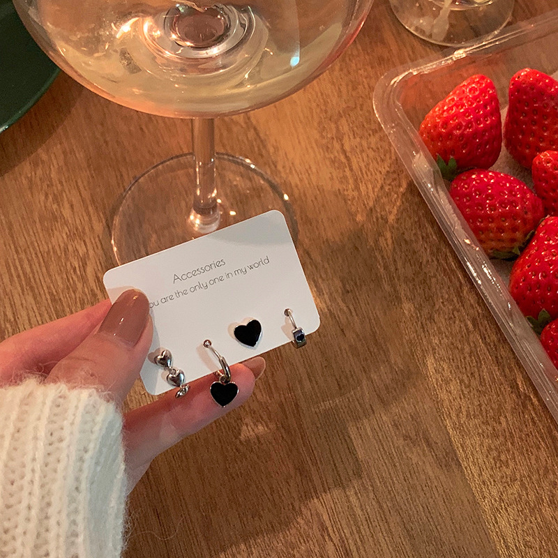 甜酷黑爱心四件套耳环2022年新款潮小众设计感高级耳饰女耳钉套装