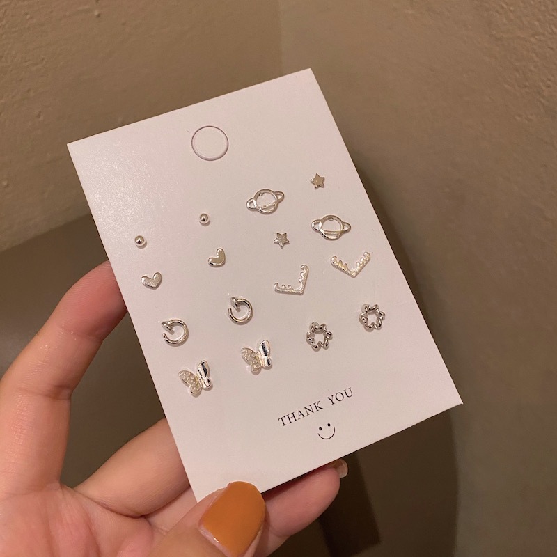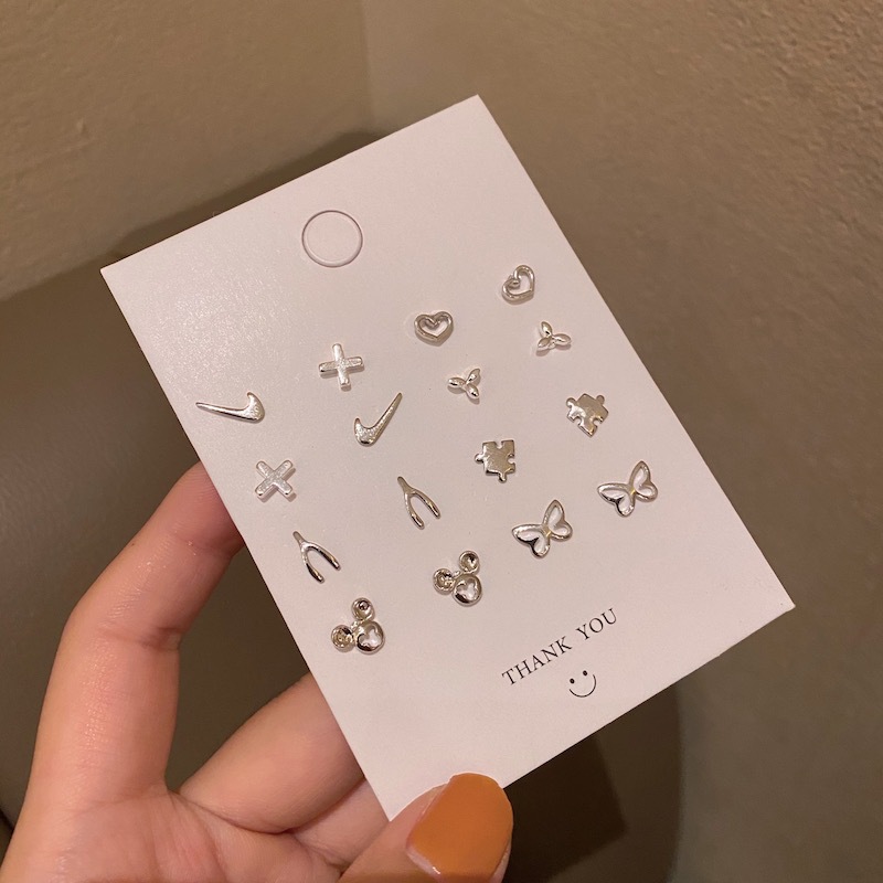 s925银针迷你耳钉套装组合精致小巧冷淡风ins爱心睡觉不用摘耳饰
