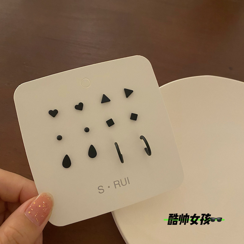 银针黑色几何酷帅耳钉套装男女爱心方块暗黑简约小巧c型圆圈耳饰