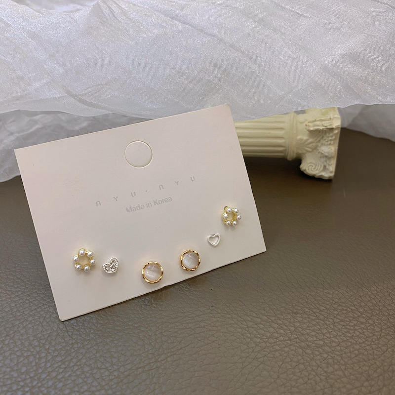 气质复古925银针珍珠猫眼耳钉套装高级感ins风简约女小巧耳环耳饰
