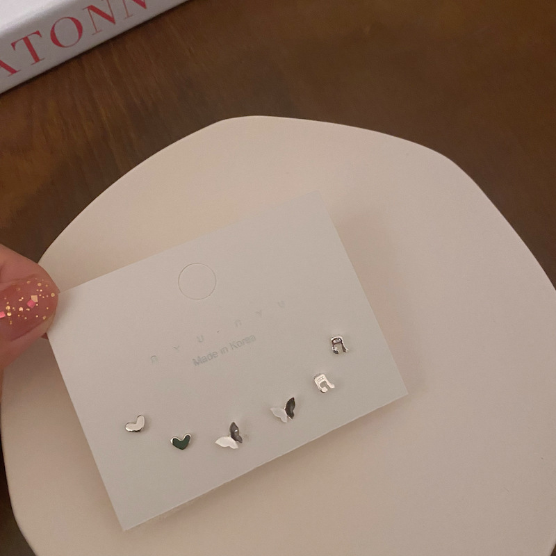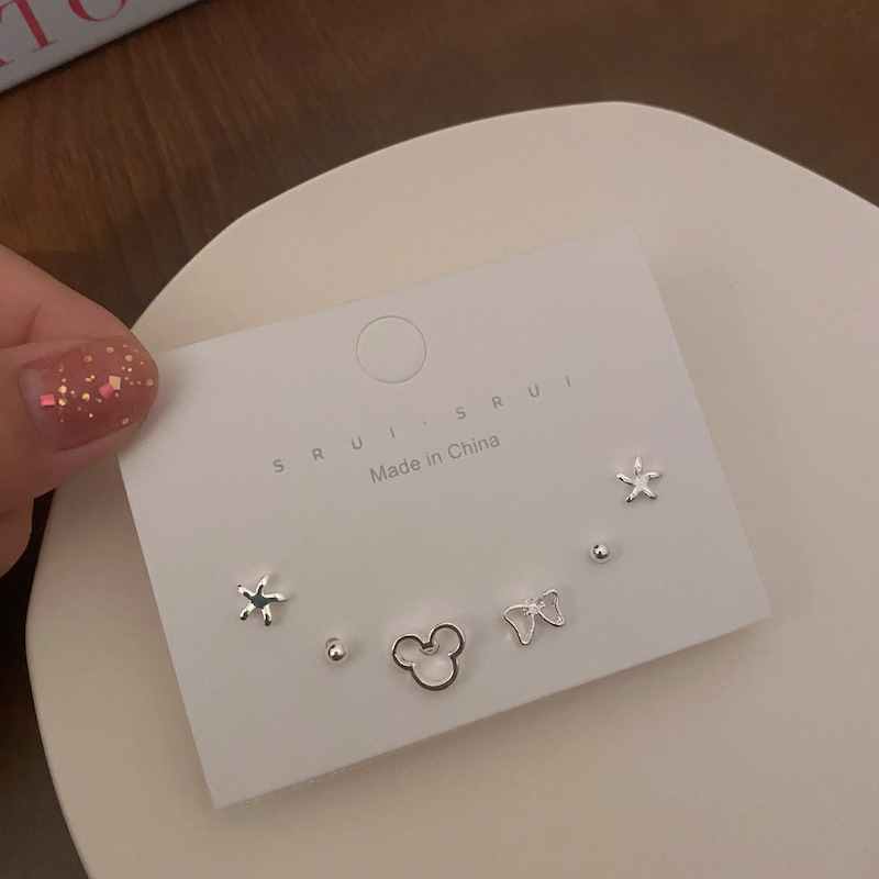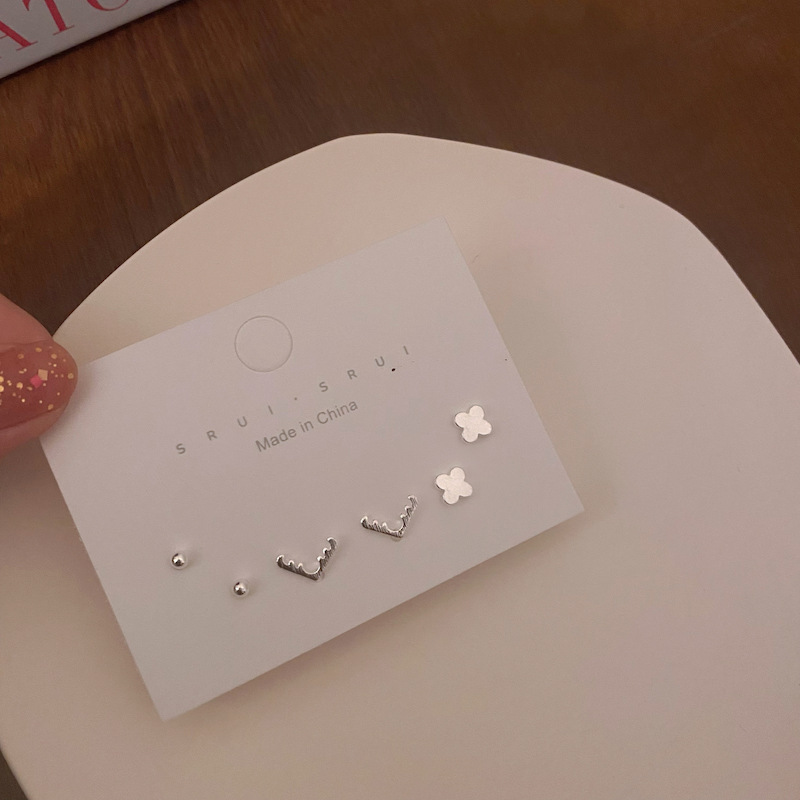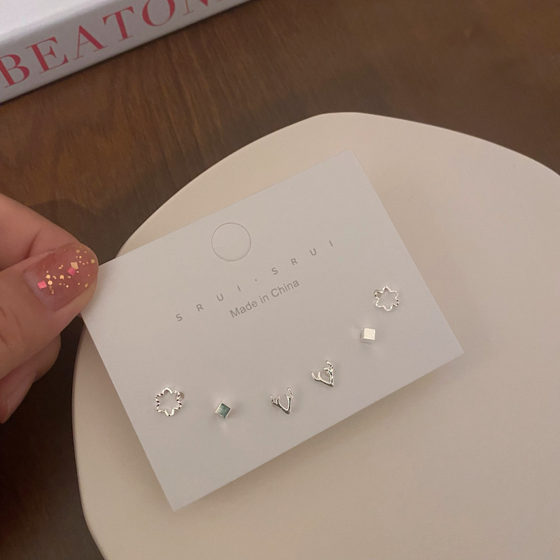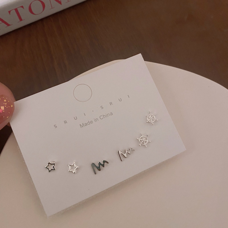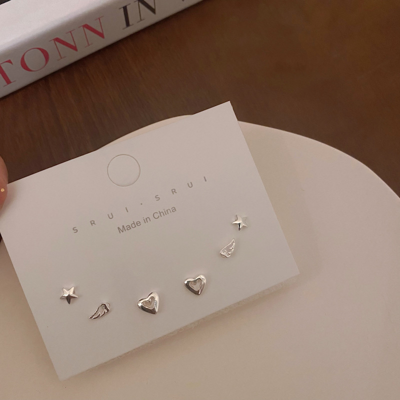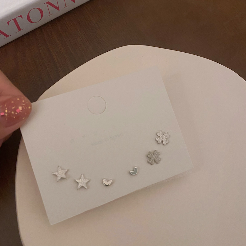 s925银针简约女小巧耳钉套装组合迷你爱心皇冠百搭养耳洞气质耳环