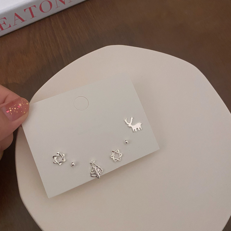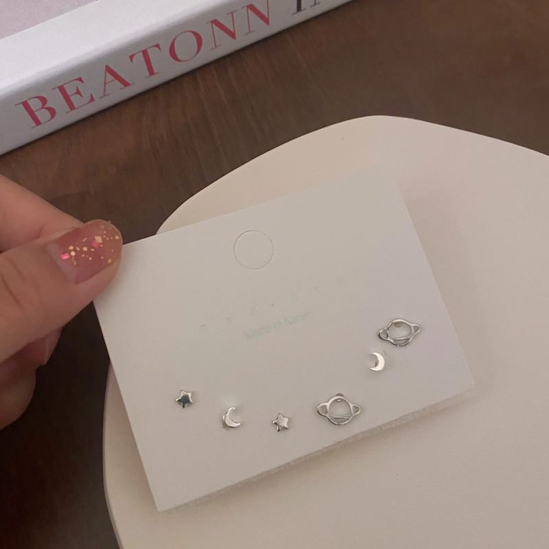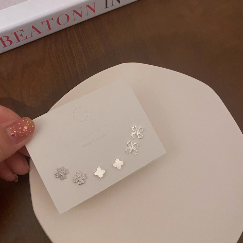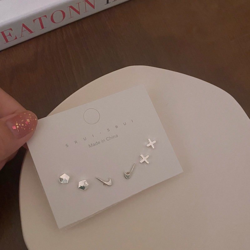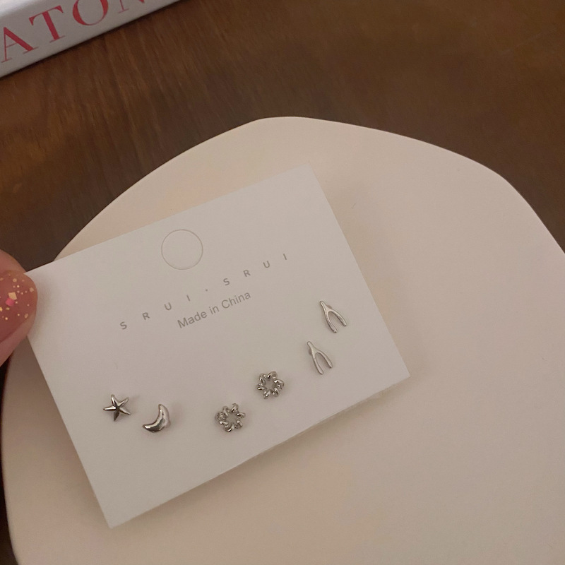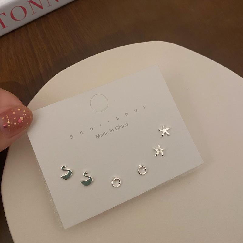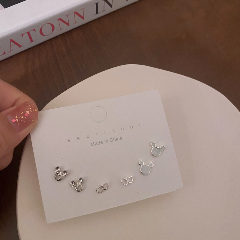 s925银针简约女小巧耳钉套装组合迷你爱心皇冠百搭养耳洞气质耳环