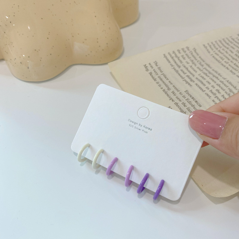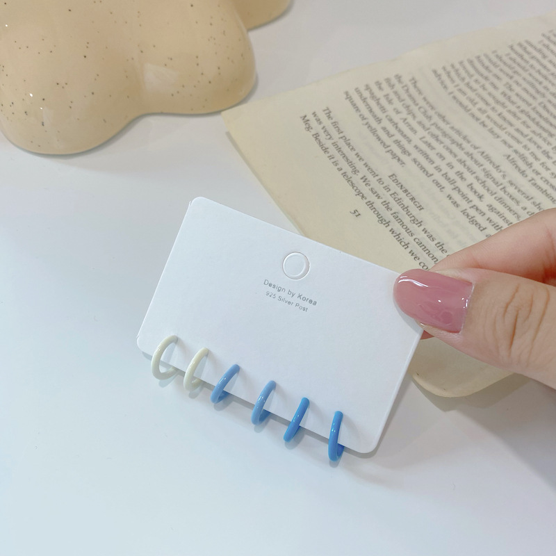 s925韩式彩色c型耳圈套装女糖果色耳钉简约气质时尚个性圆圈耳环