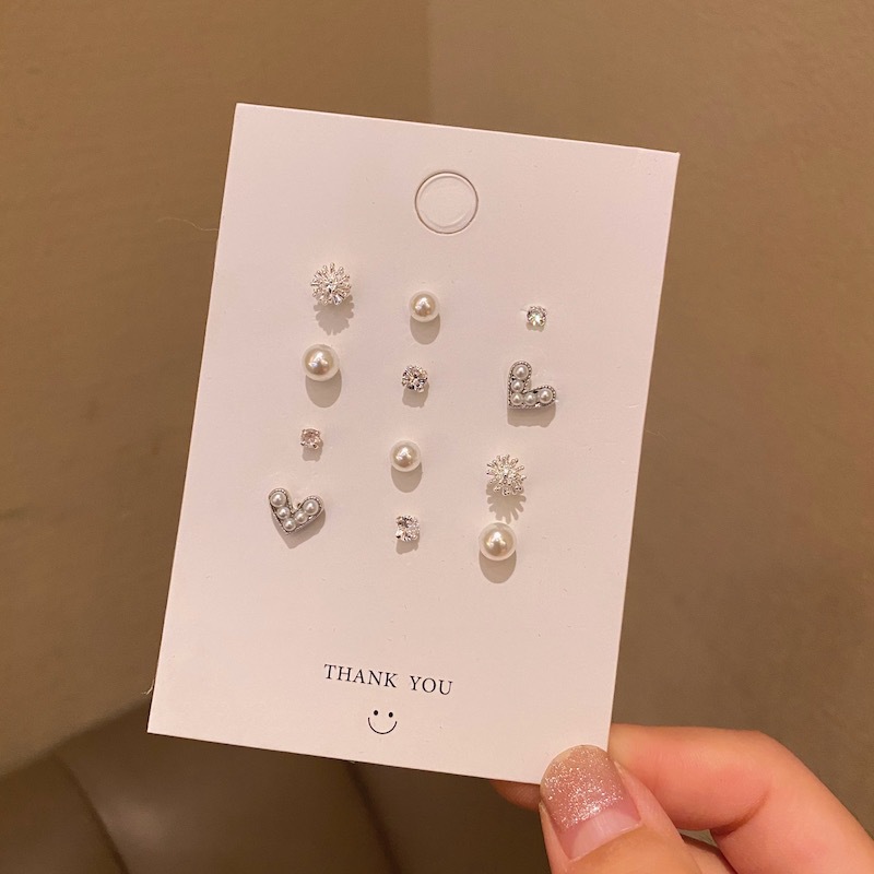 925纯银珍珠爱心耳钉套装简约小巧冷淡风c型圈设计感睡觉免摘耳环