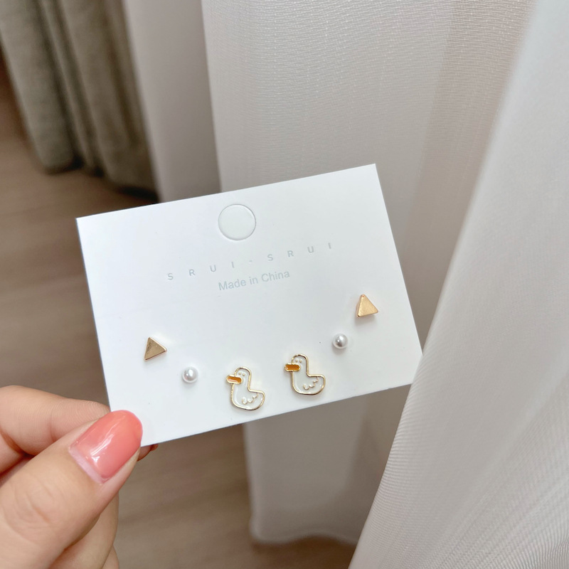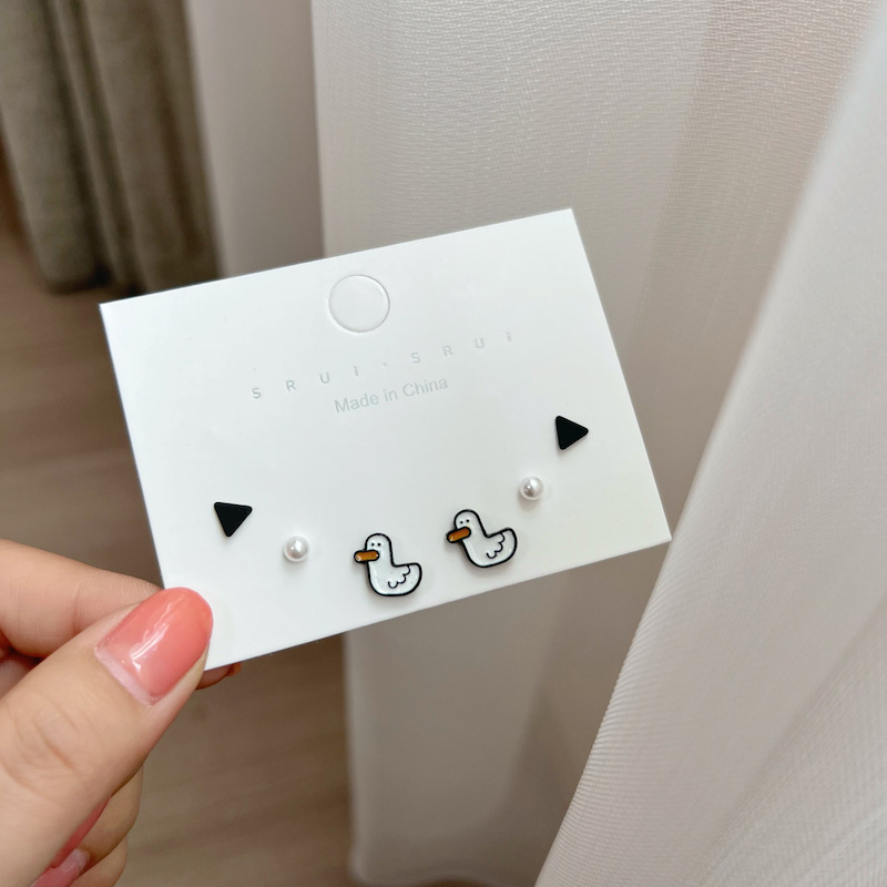 s925银针日韩可爱卡通小鸭子几何耳钉套装女学生小众设计耳环耳饰