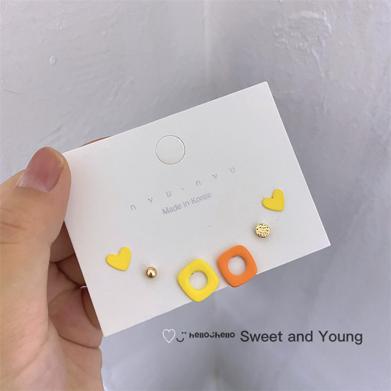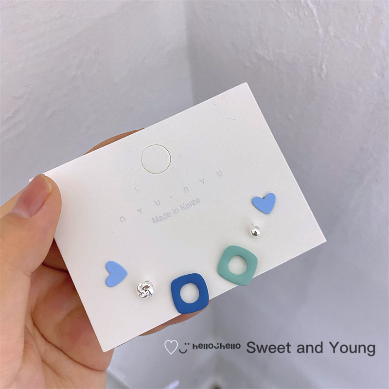 夏天彩色几何耳钉三件套装组合设计感s925纯银针可爱少女耳环耳饰