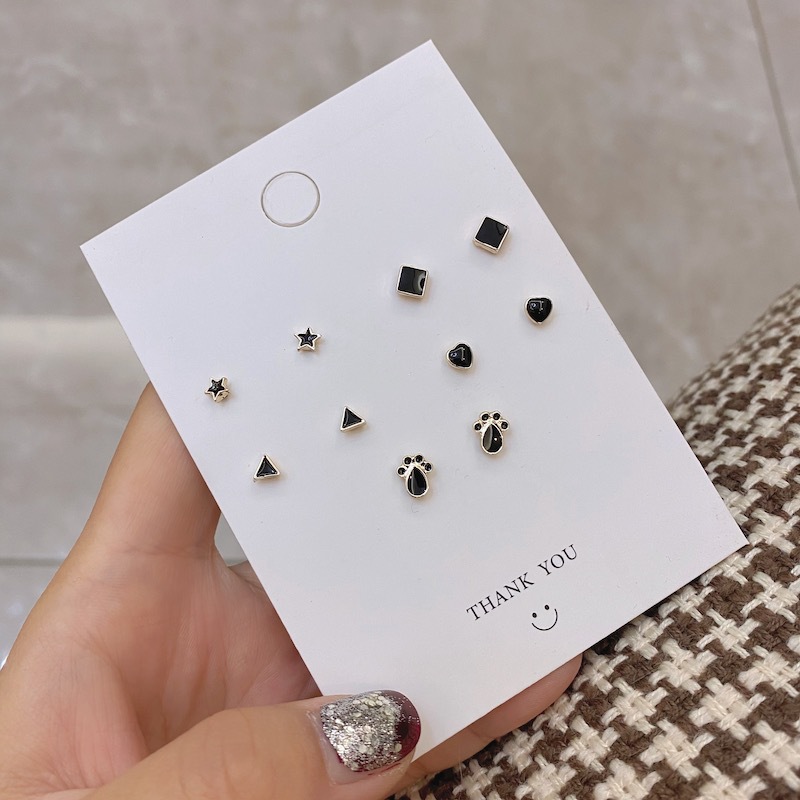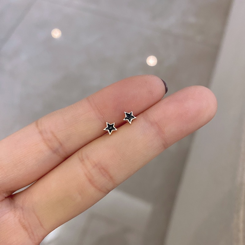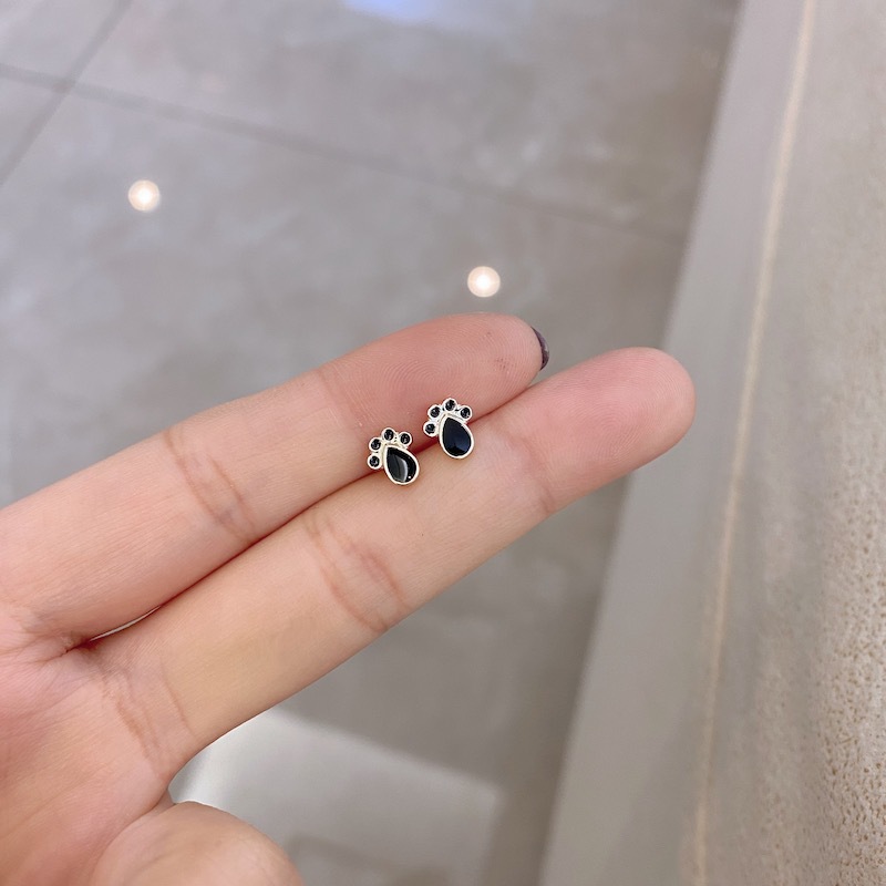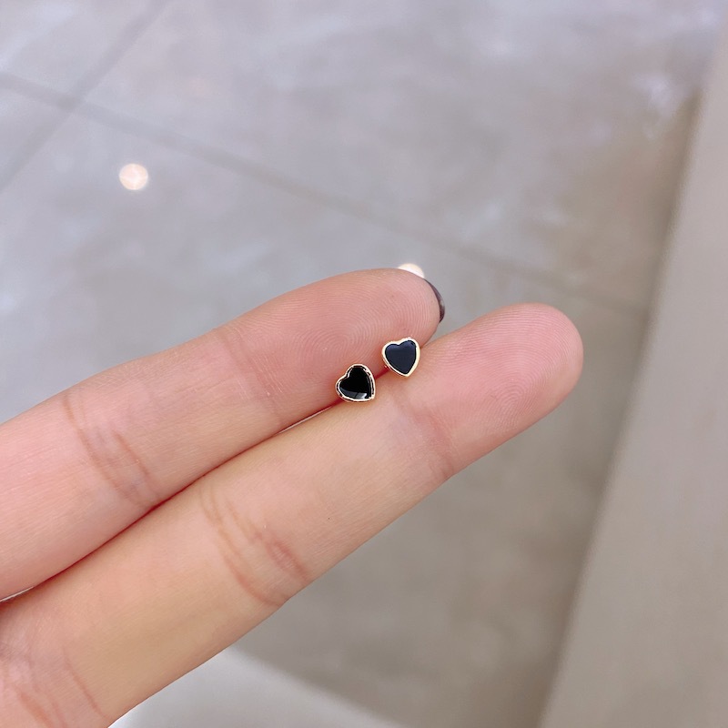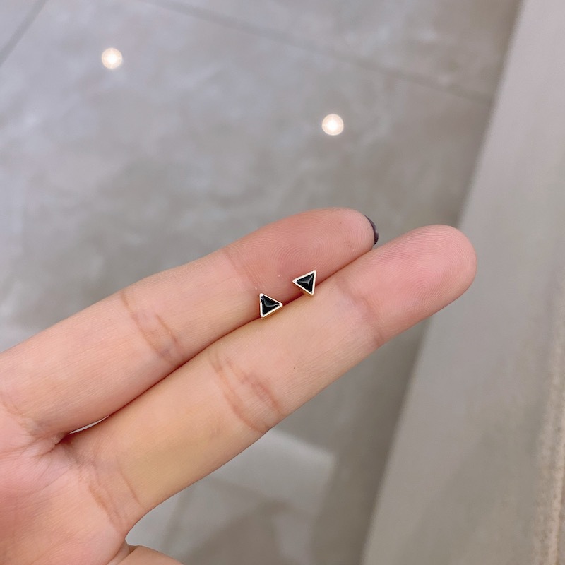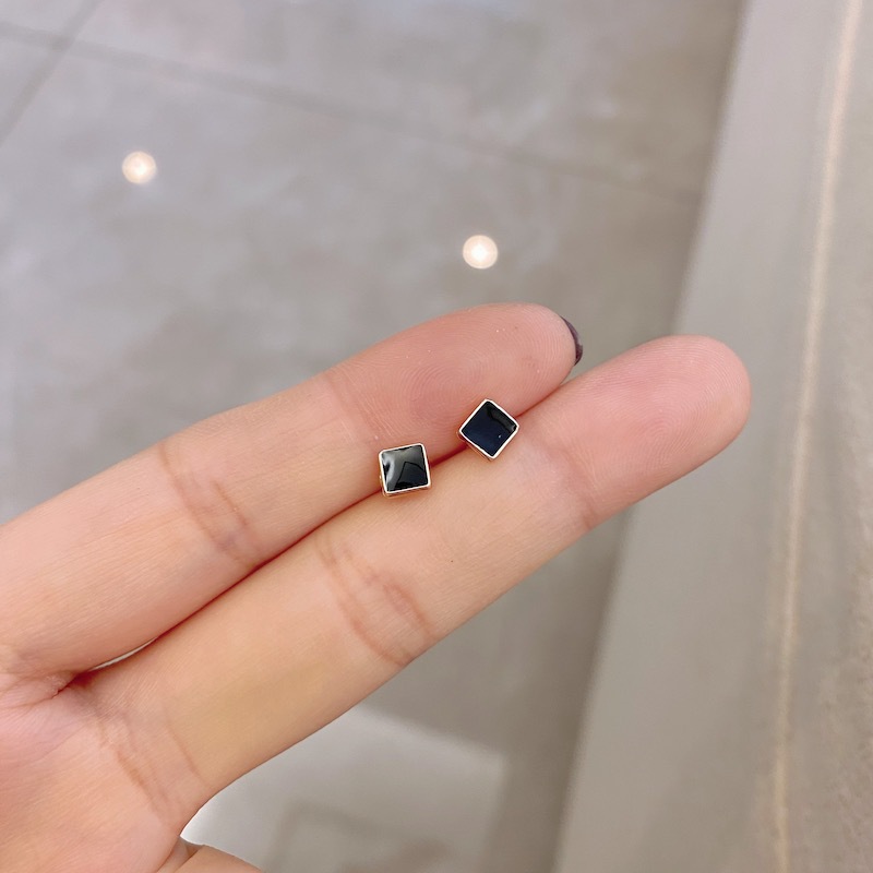 s925纯银几何黑色耳钉迷你女气质韩国简约个性小巧精致酷耳饰百搭
