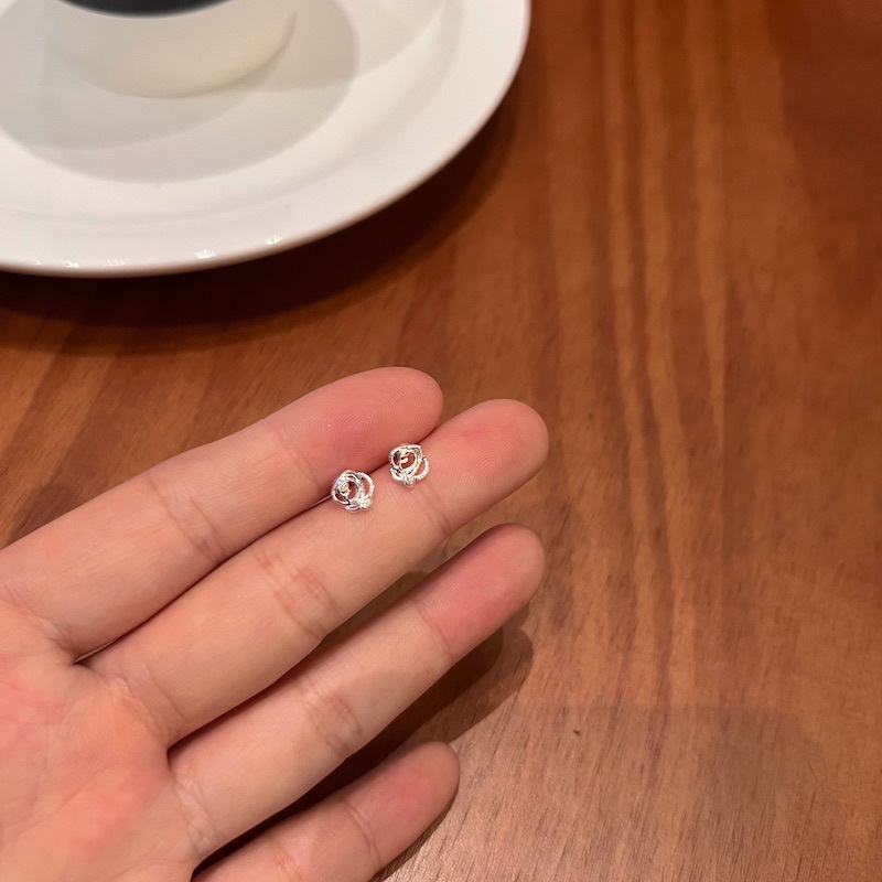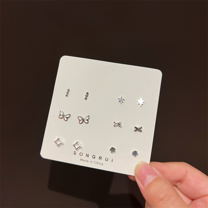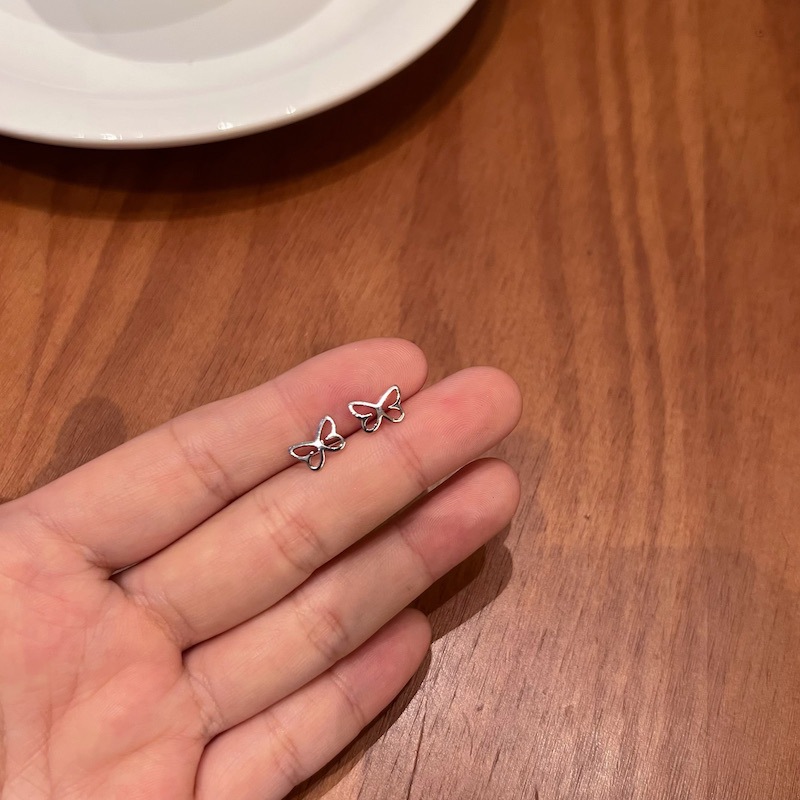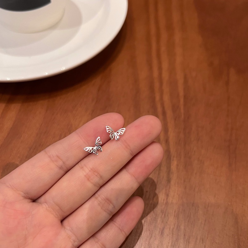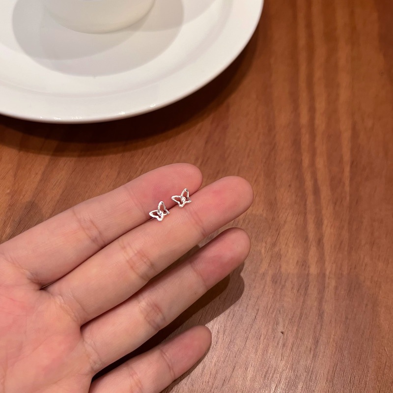 s925银针简约百搭小巧玫瑰花蝴蝶耳钉套装组合女2022年新款潮耳饰