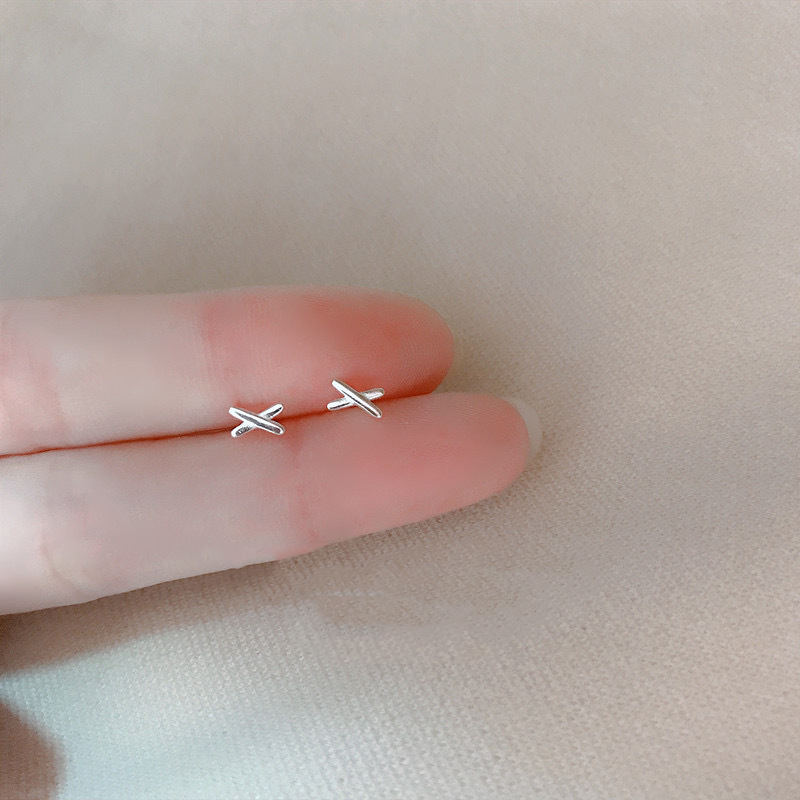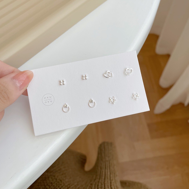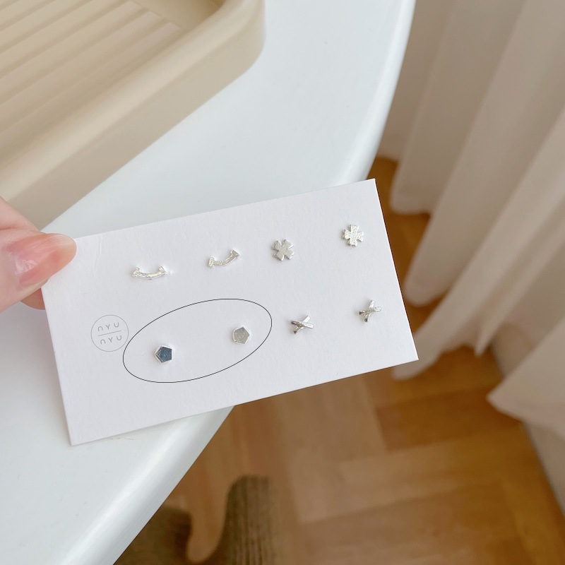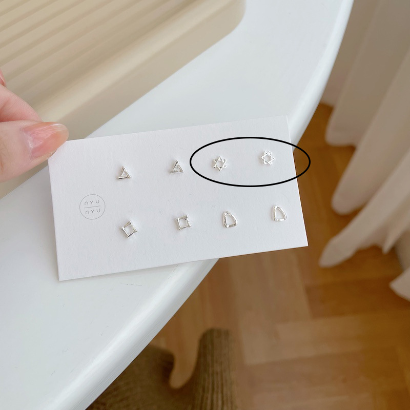 s925银针镂空几何小众设计感耳钉套装简约小巧精致迷你百搭养耳洞