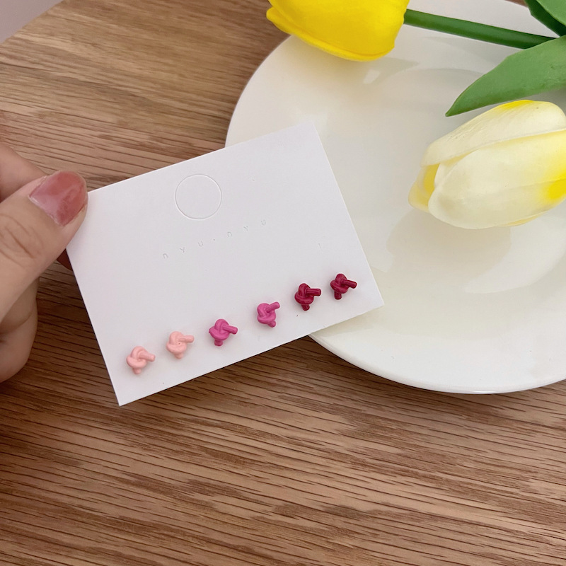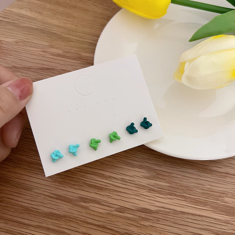 韩国夏天925银针彩色渐变打结耳钉三件套装ins小众设计感几何耳饰