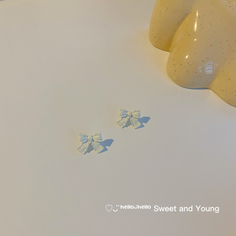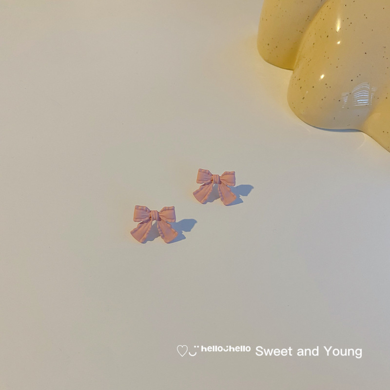 甜美银针粉白彩色蝴蝶结耳钉韩版少女心小清新可爱耳环潮