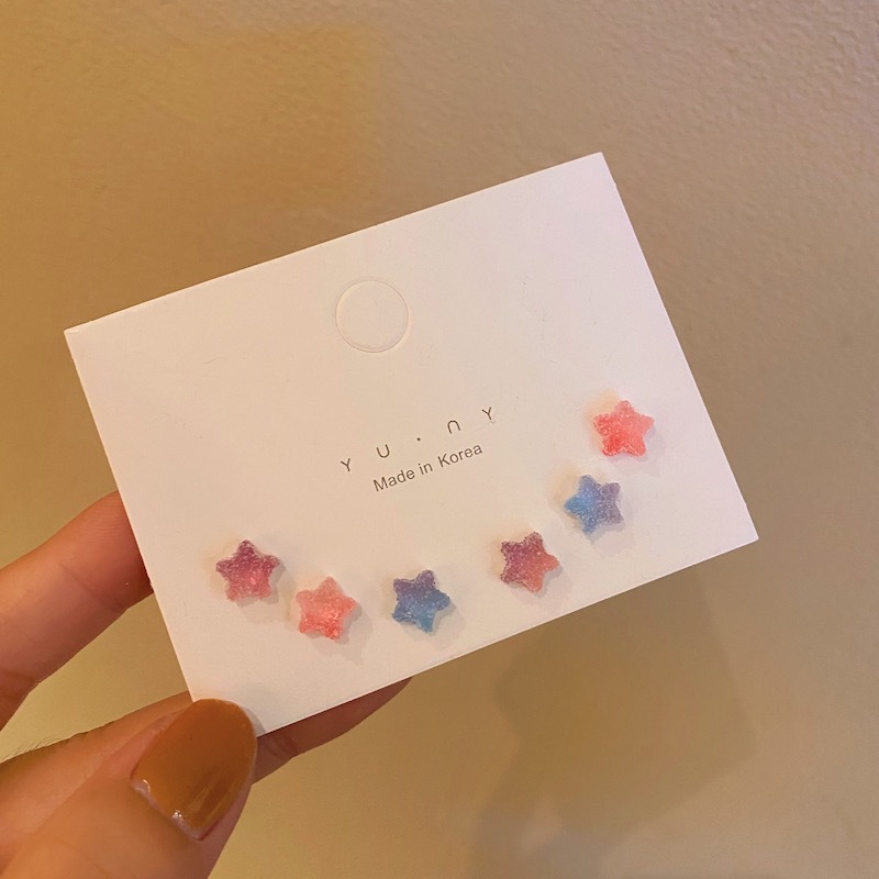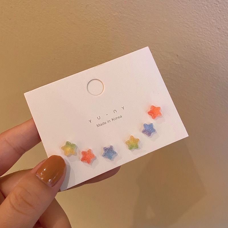 银针彩色五角星耳钉三件套装童趣夏日可爱小众设计感耳环个性耳饰