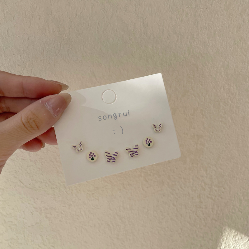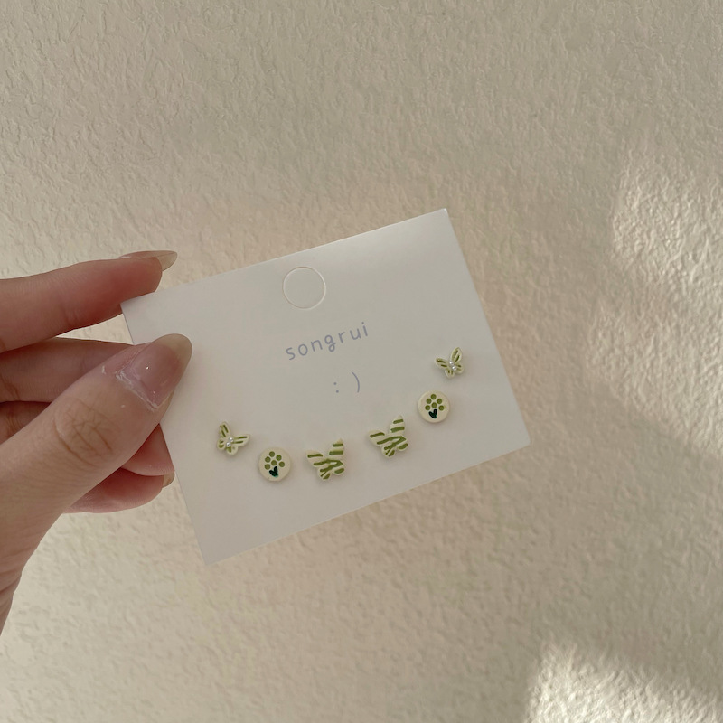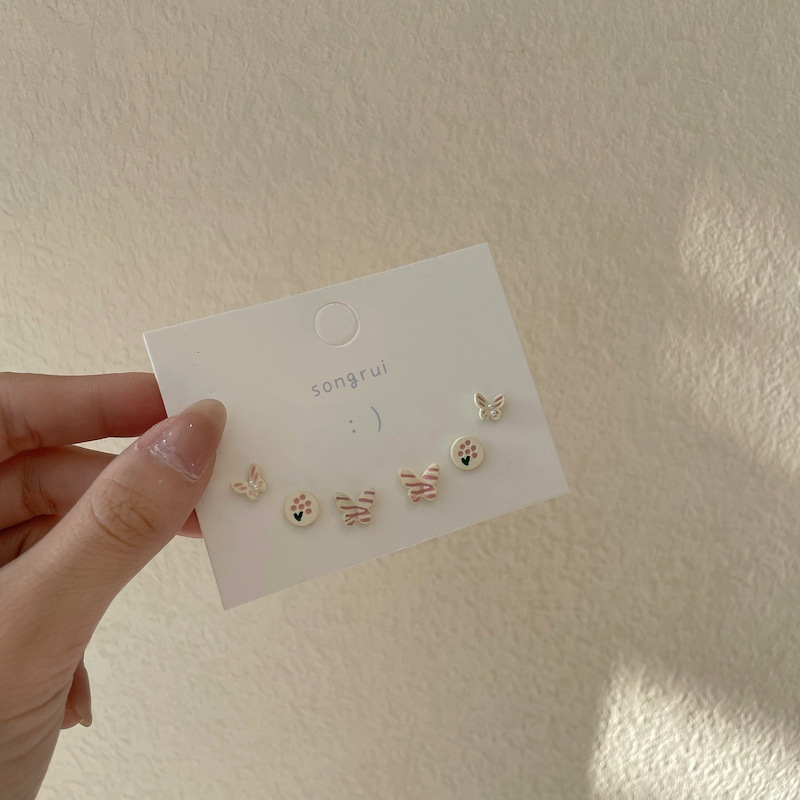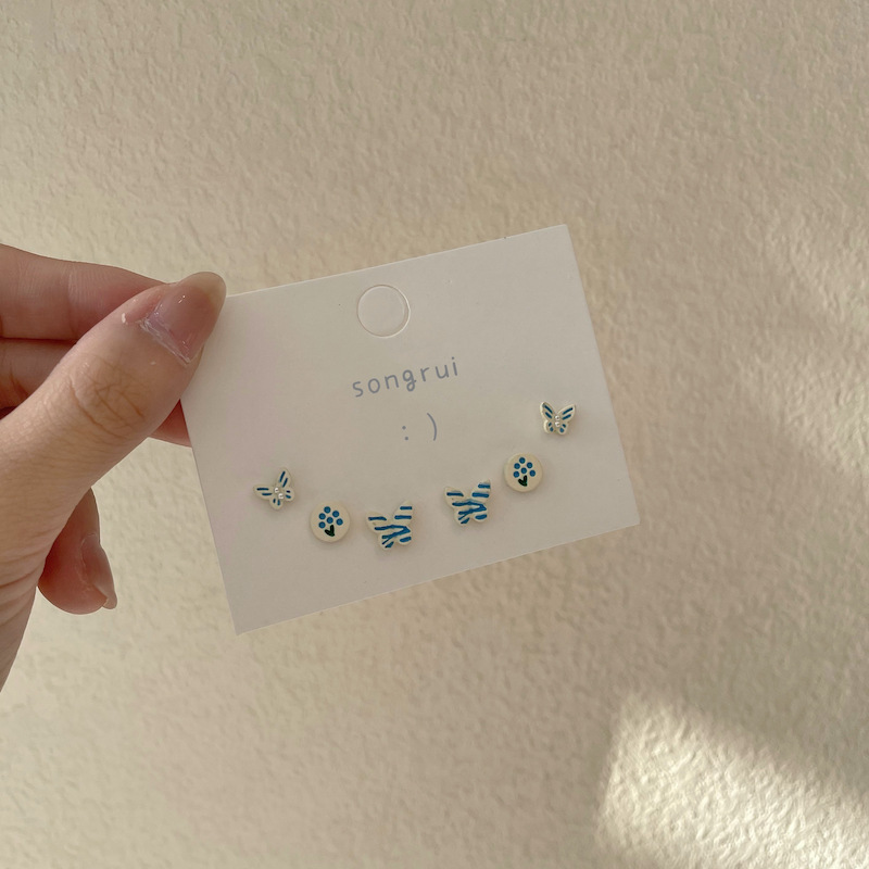 s925银针彩色蝴蝶高级感小众耳钉三件套装超仙可爱少女小清新耳饰